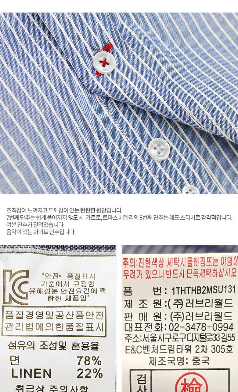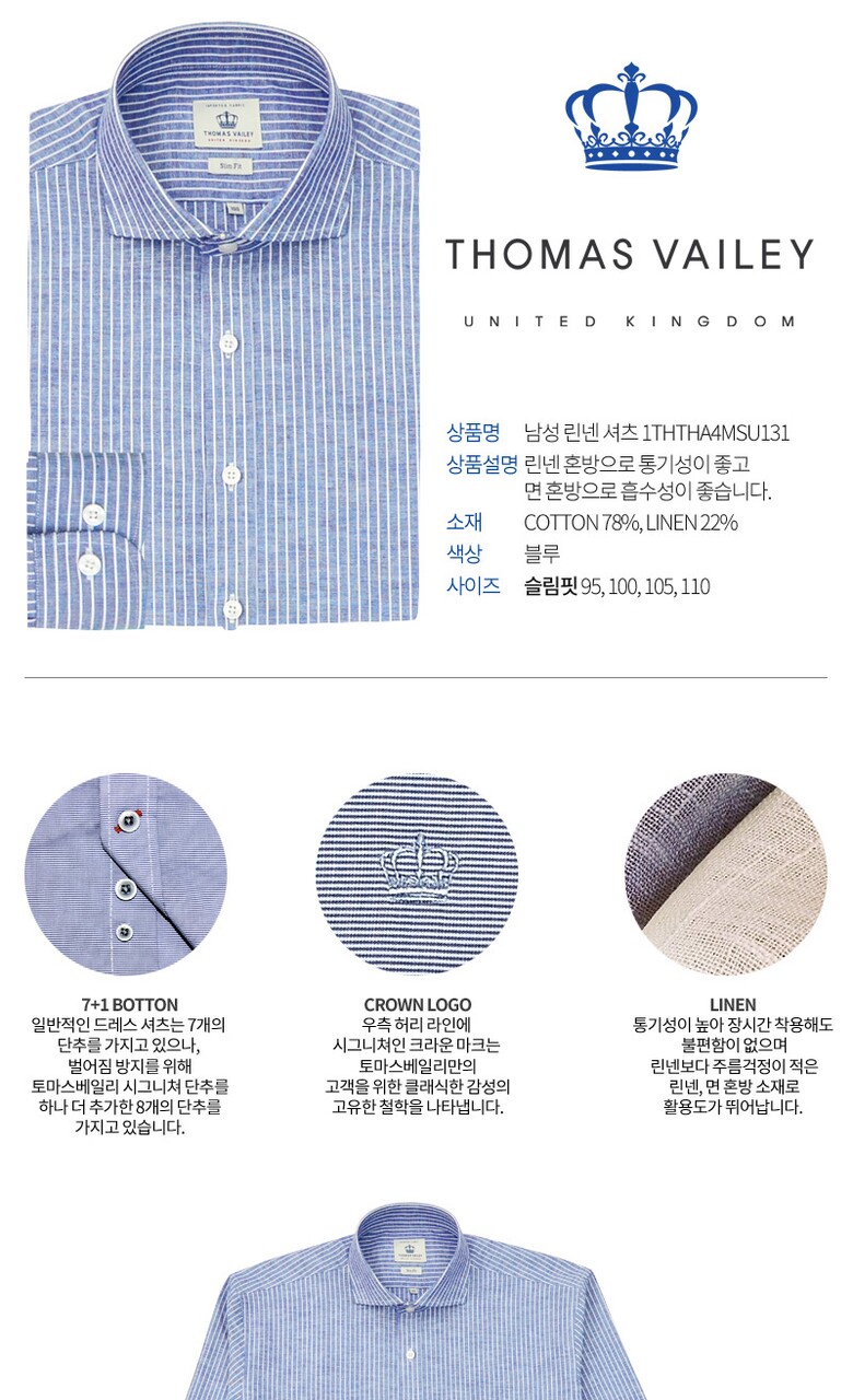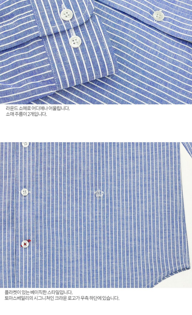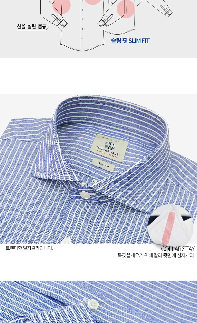 [THOMAS VAILEY] 토마스 베일리 린넨 스트라이프 와이드카라 셔츠 블루 1THTHA5MSU131