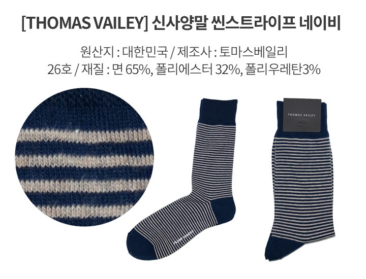 [THOMAS VAILEY] 토마스베일리 신사양말 - 씬스트라이프 네이비