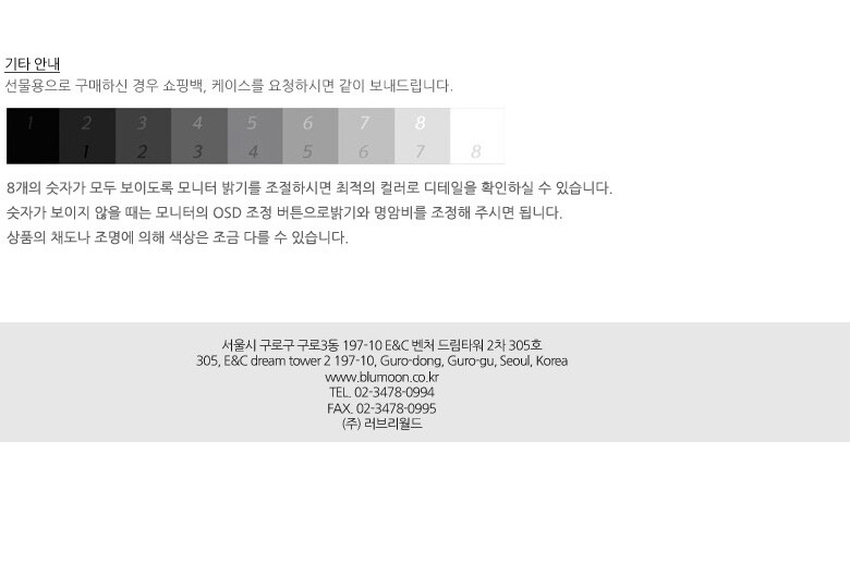 | 8. A/S 책임자와 전화번호 | (주)러브리월드/ 02-3478-0994 |