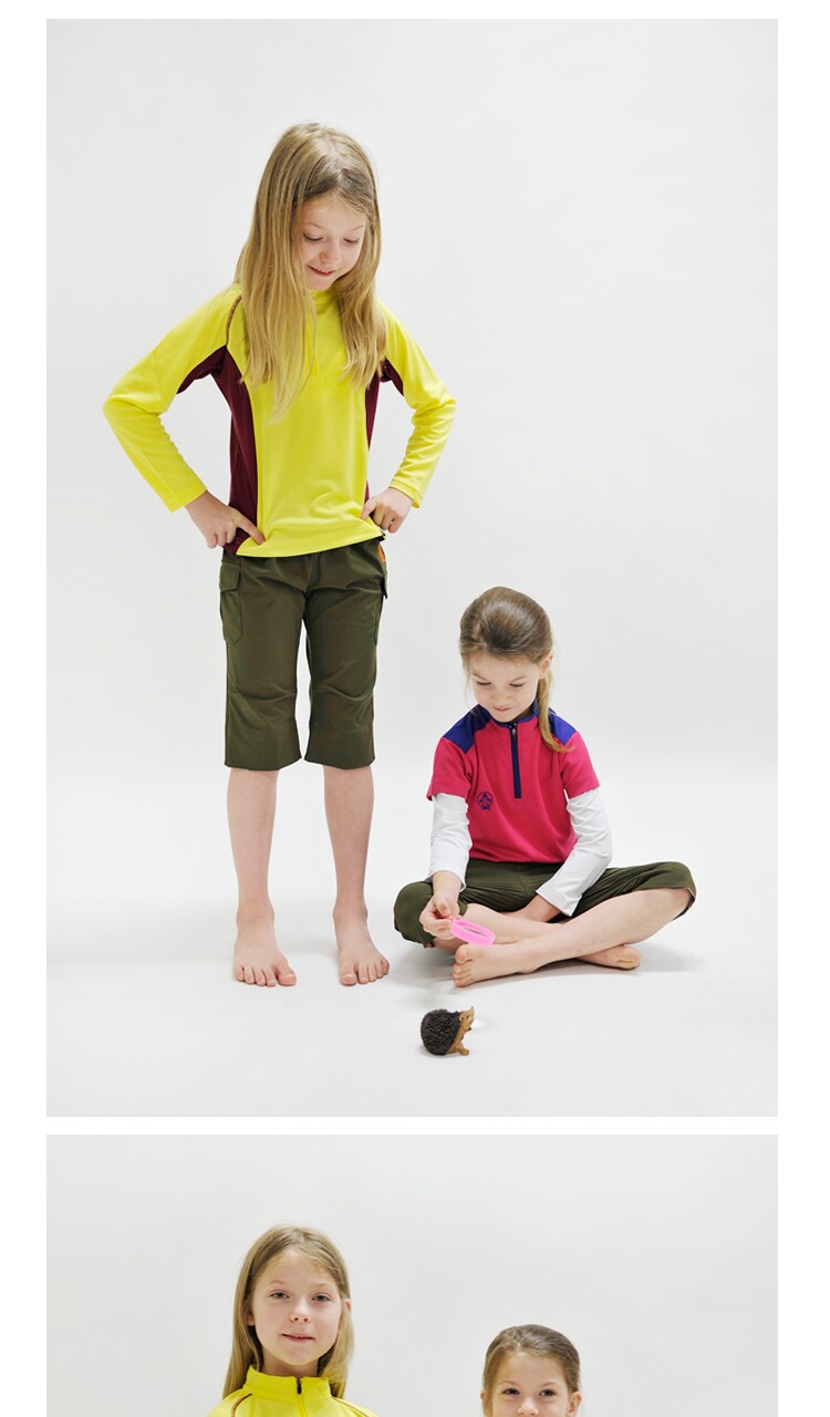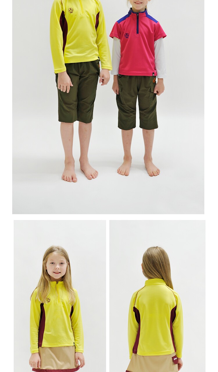 키즈아웃도어 등산티 남아 여아 봄여름 티셔츠 쿨론 반집업 티셔츠 SIDE MESH COOLON 옐로우