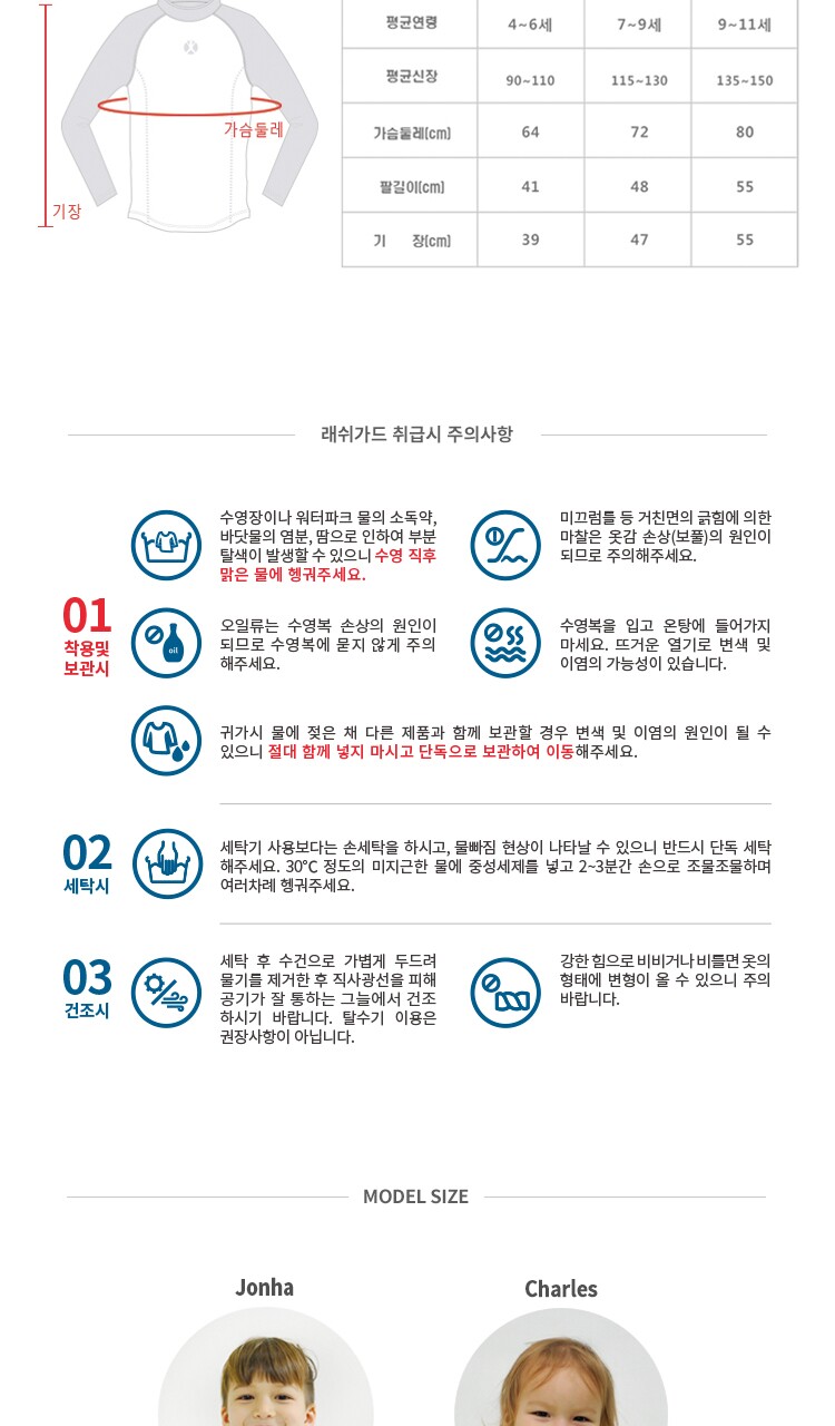 아동래쉬가드 긴팔 스윔웨어 래쉬가드 RASHGUARD 파랑수영복 자외선차단