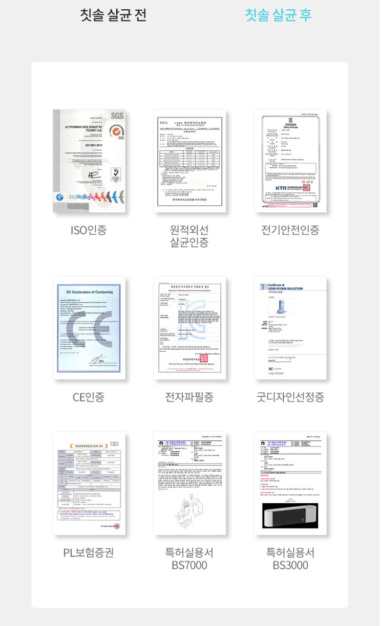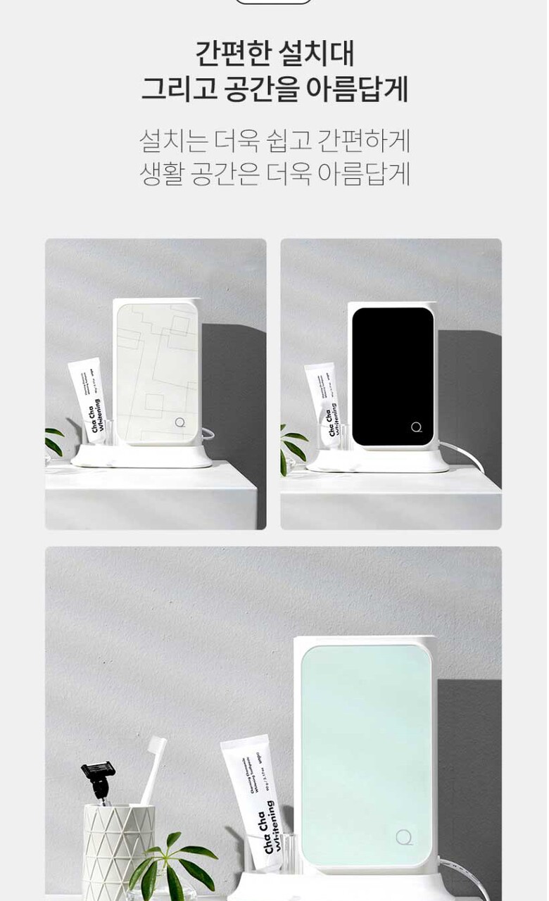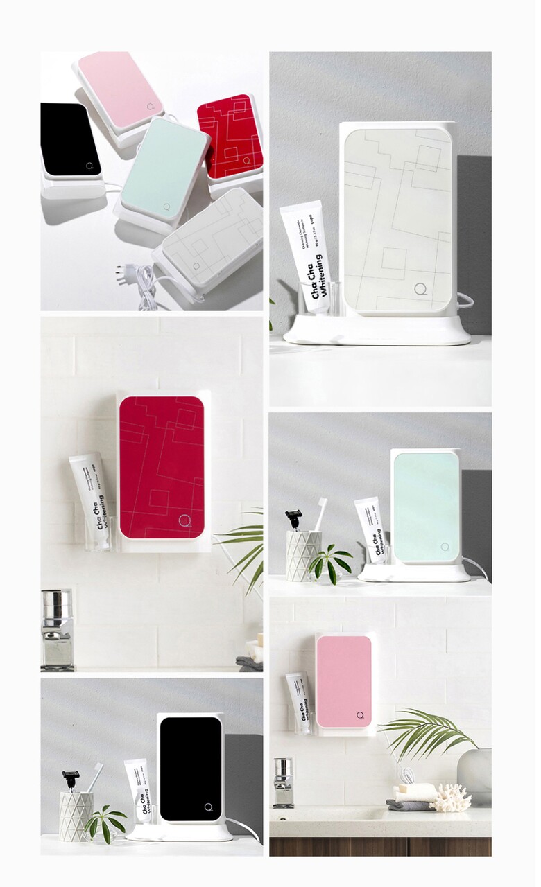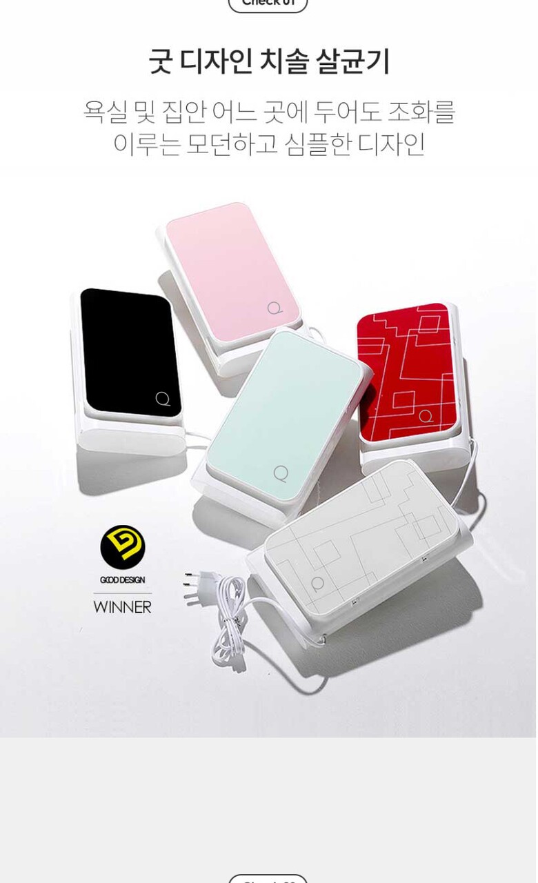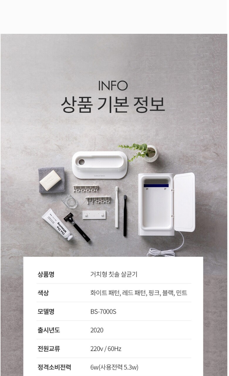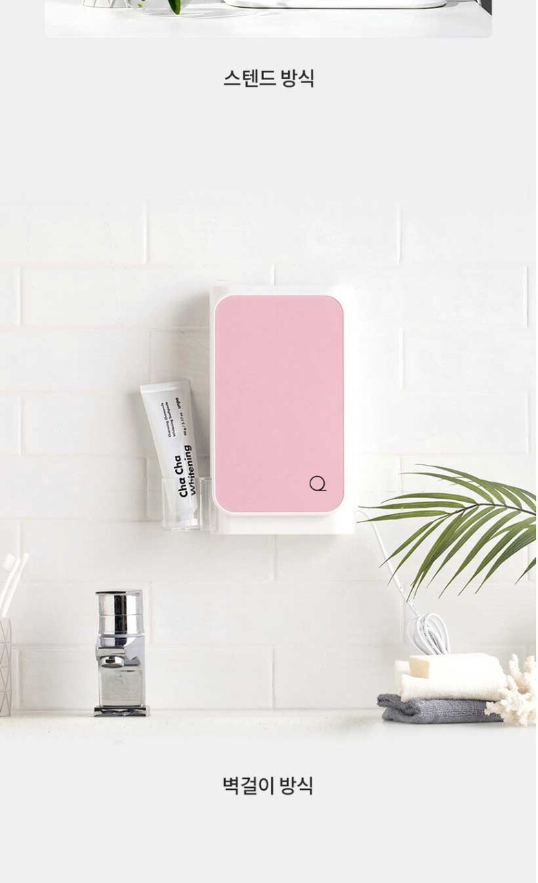 - 스탠드와 벽걸이 겸용이 가능한, 심플하고 모던한 디자인의 가정용 칫솔살균기. 99.9% 살균 인증.