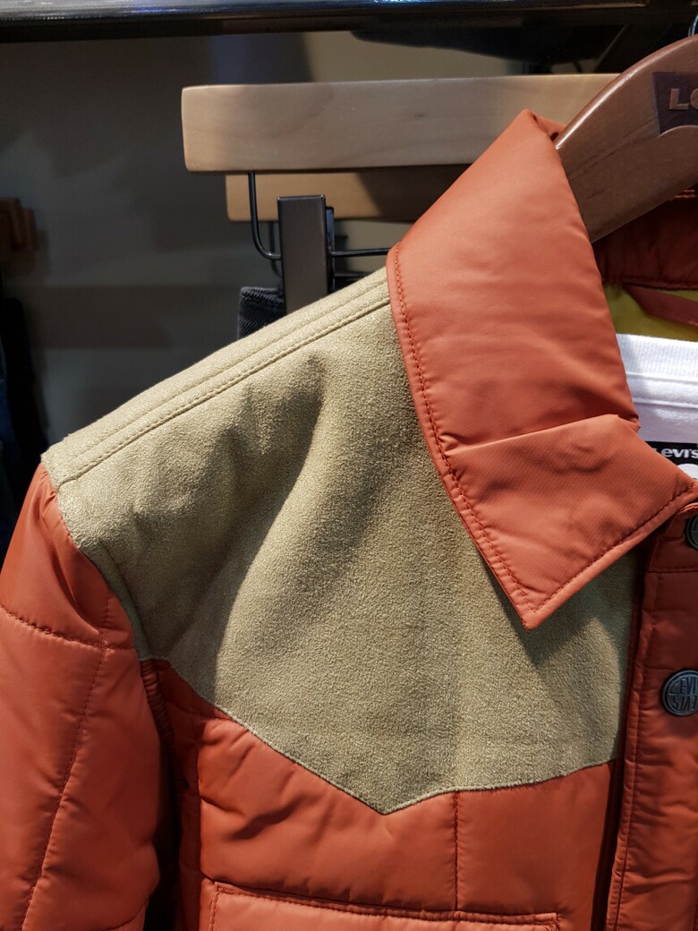 셔켓느낌으로 디자인된 스타일로 어깨부분은 스웨이드느낌으로
