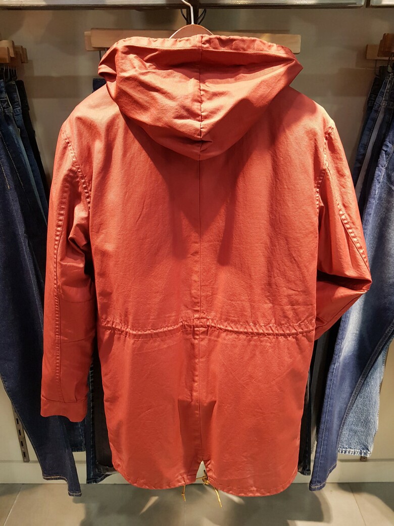 엉덩이 까지 내려오는 기장감으로 빈티지하고 멋스러운 코디가 가능한스타일입니다