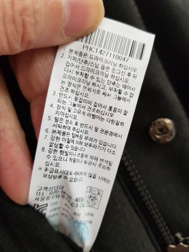 | 6. 세탁방법 및 취급시 주의사항 | 상품상세참조 |