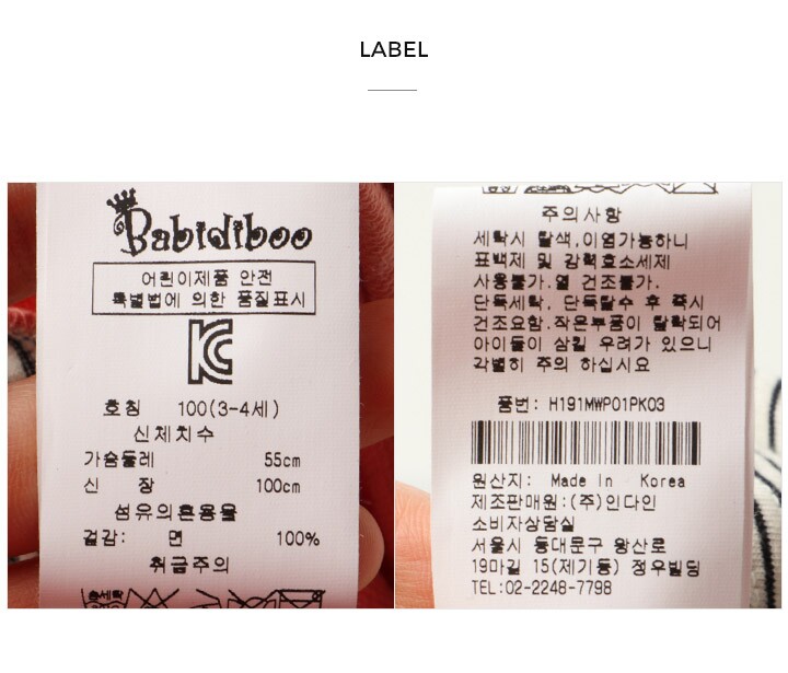 1. 제품 소재 (섬유의 조성 또는 혼용률을 백분율로 표시, 기능성인 경우 성적서 또는 허가서) | 면100% |