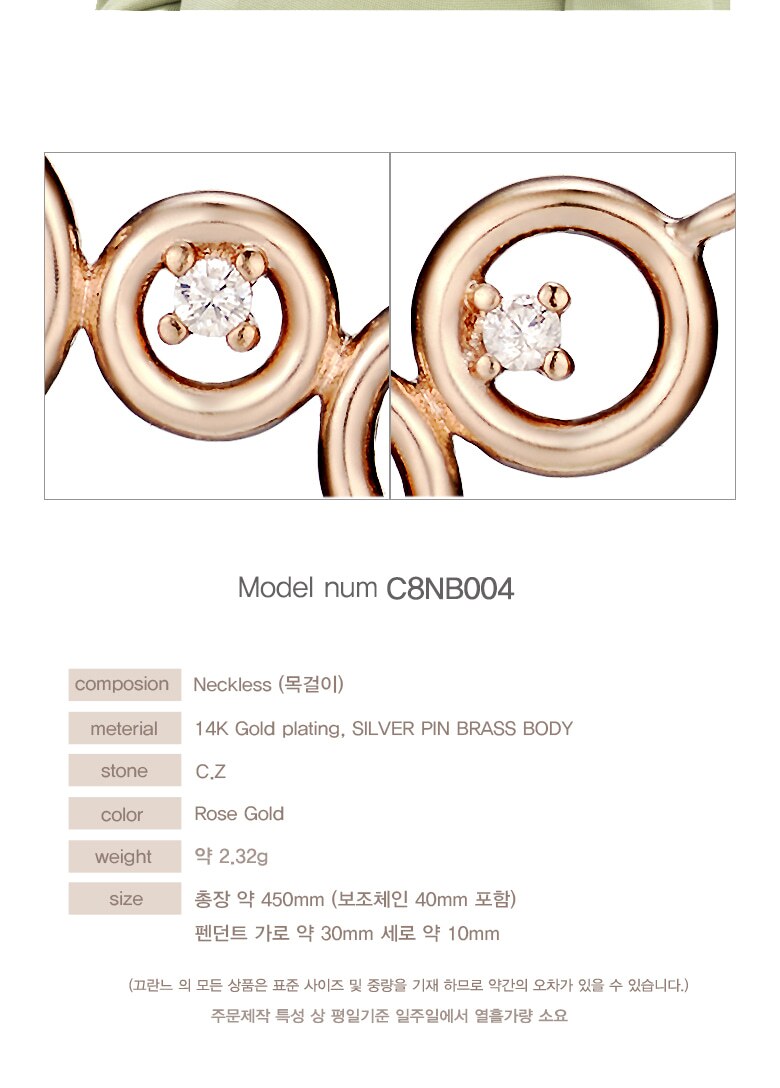 6. 취급시 주의사항 본 상품은 개개인의 모니터의 색상에 따라 상품의 이미지 색상이 다르게 보일 수 있습니다. 화장품 또는 향수 등의 화학품이 닿을 경우 스톤의 탈락 또는 변색될 수 있음으로 주의 바랍니다. 본 상품은 생활방수 이므로 가급적 물에 닿지 않도록 주의 하시기 바랍니다.