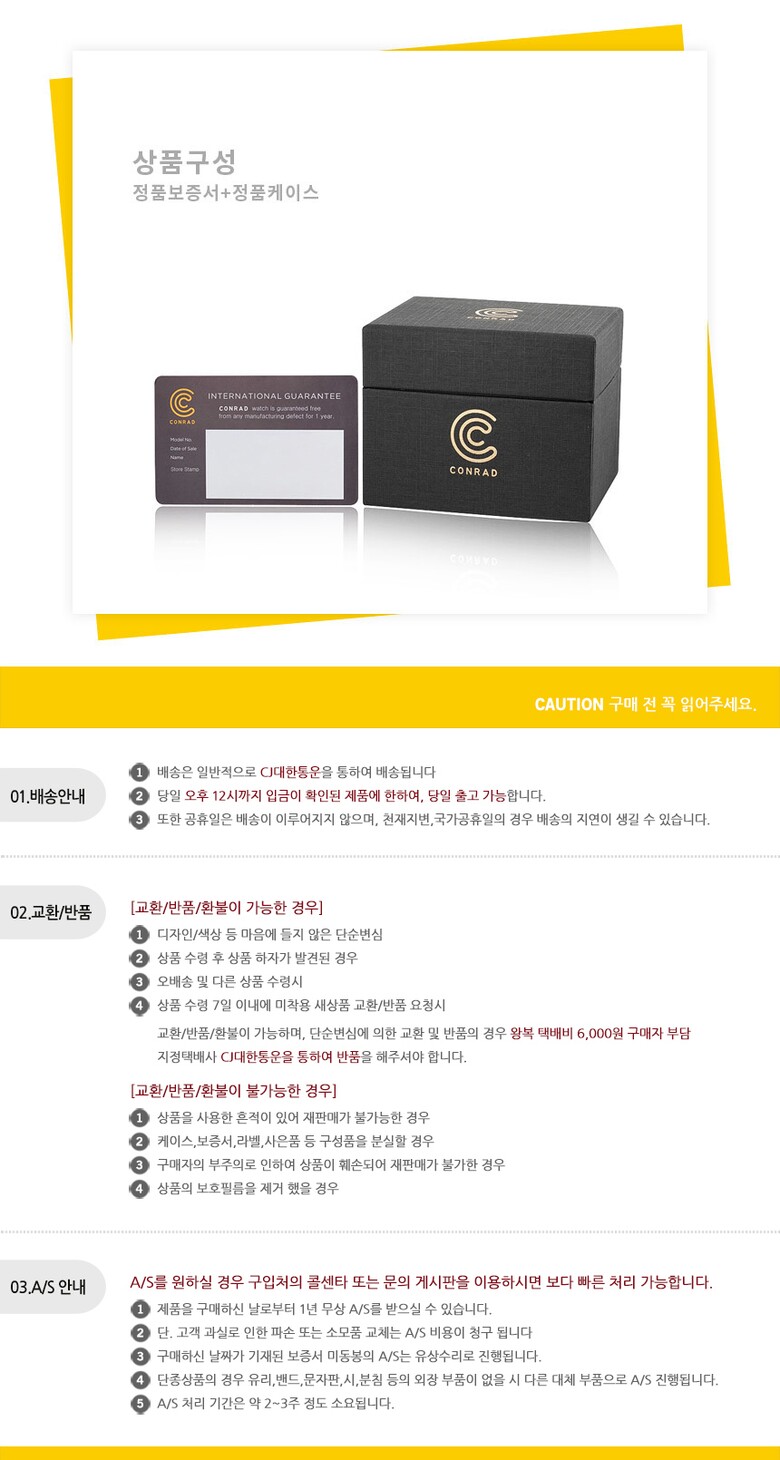 • 모든 규정은 전자상거래법에 의거하며, 택배사정으로 배송이 지연된 경우 재화를 공급받은 날로부터 7일 이내에 반품 가능합니다.