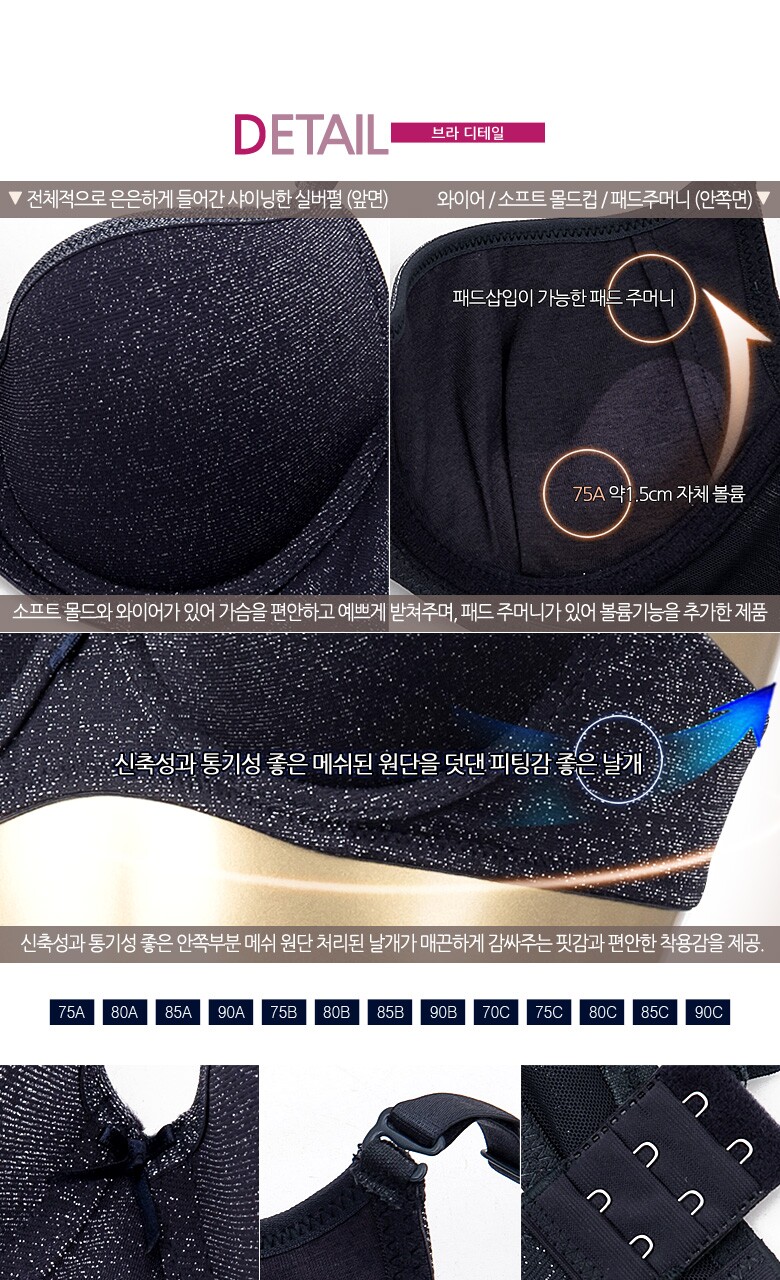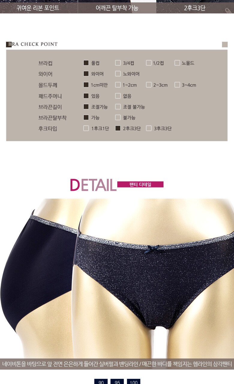 3. 치수 | 브라:75A,80A,85A,90A,75B,80B,85B,90B,70C,75C,80C,85C,90C/팬티:90,95,100 |