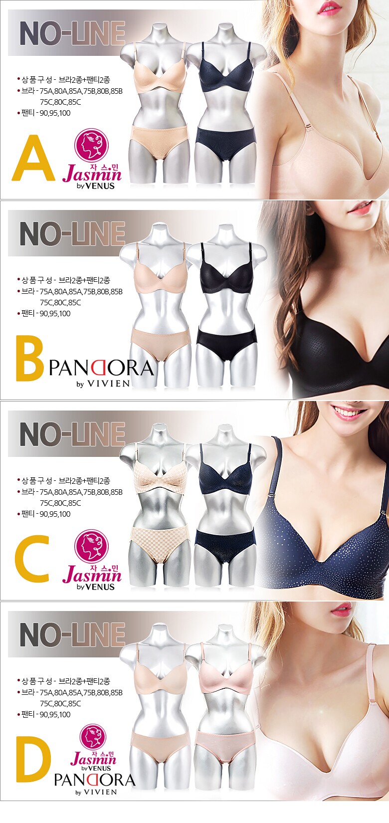 [비너스 비비안]무봉제(브라2종+팬티2종)누디4종세트 타입별 브라팬티 택1