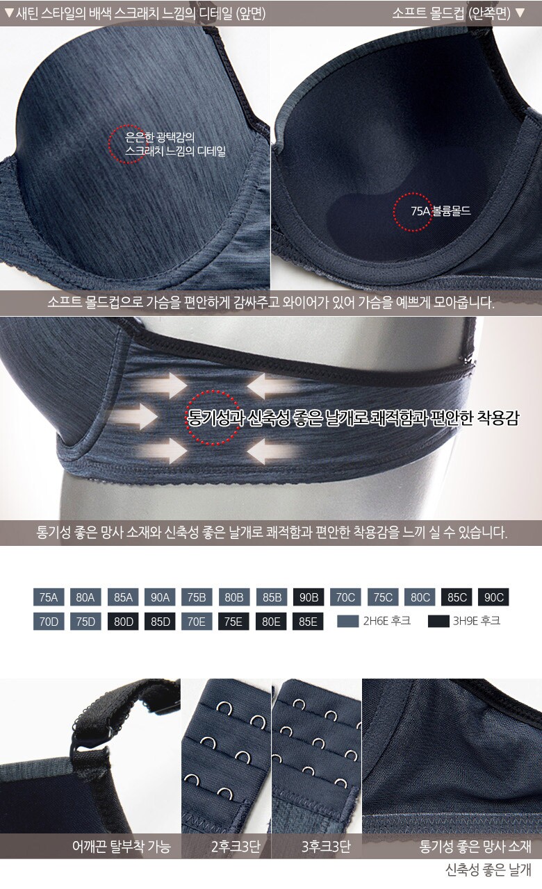 3. 치수 | 브라:75A,80A,85A,90A,75B,80B,85B,90B,70C,75C,80C,85C,90C70D,75D,80D,85D,70E,75E,80E,85E 팬티:90,95,100 |