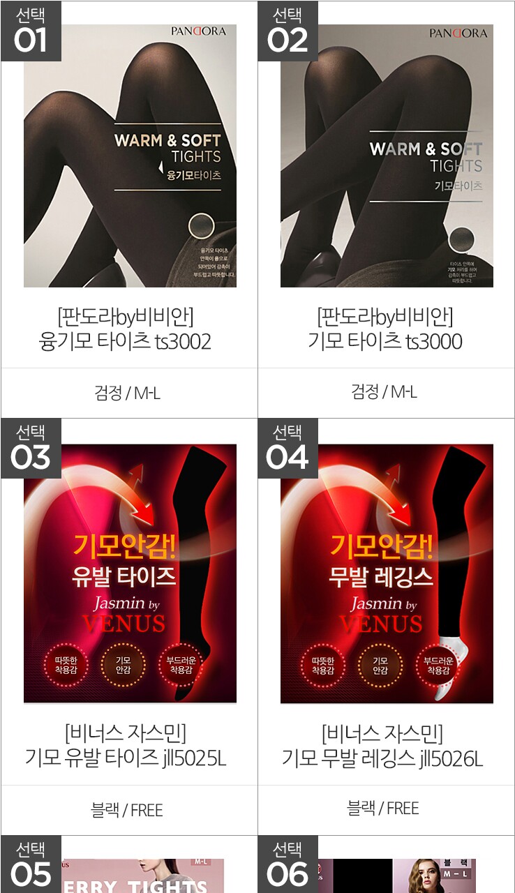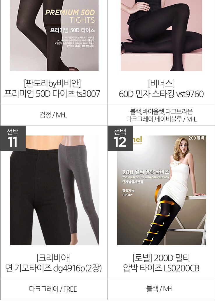 [비너스 外]균일가!!탁월한 보온성 겨울용 타이즈/레깅스 12종 택1