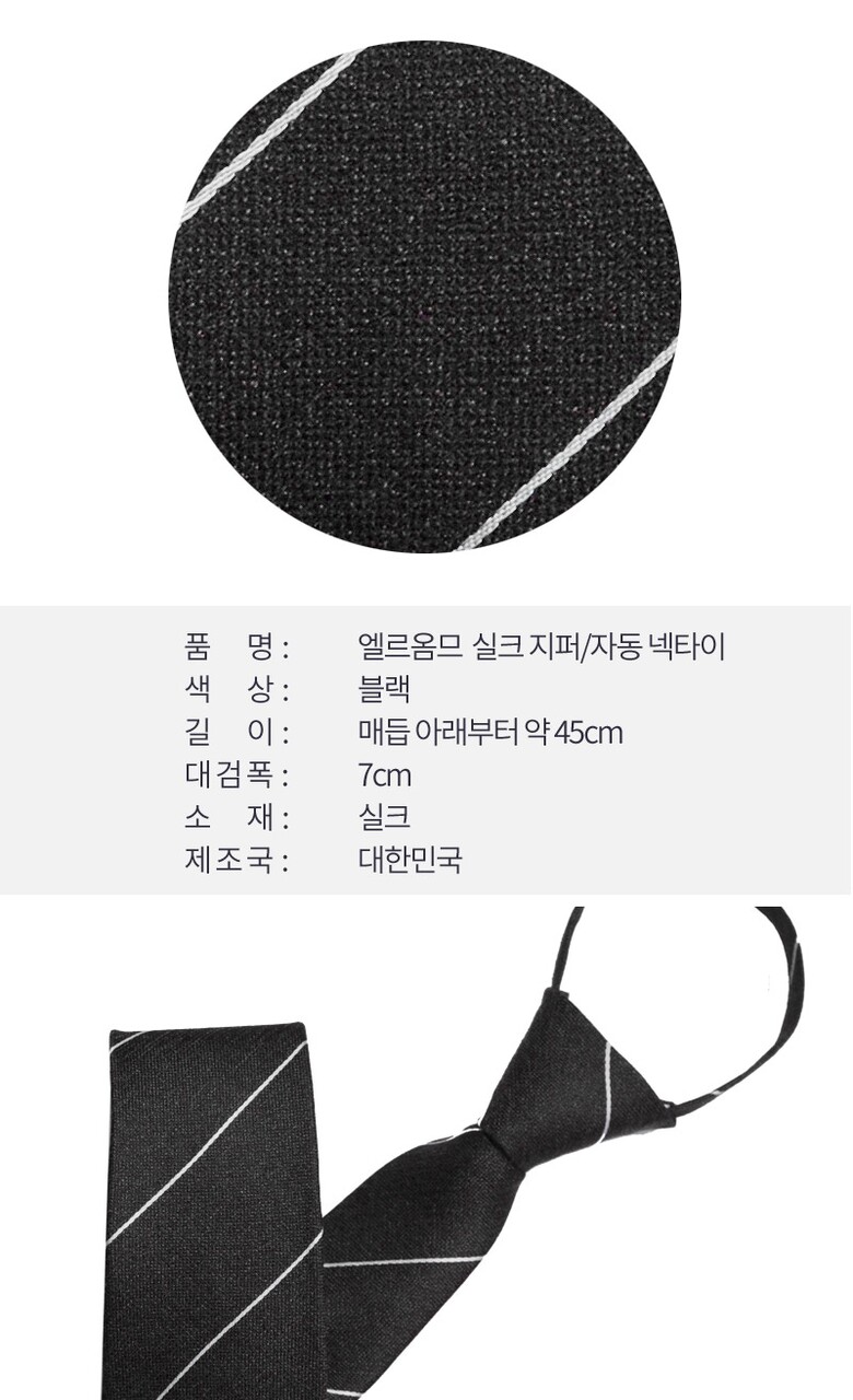 [ELLE HOMME] 엘르옴므 실크 지퍼/자동 넥타이-펜슬 블랙 7cm