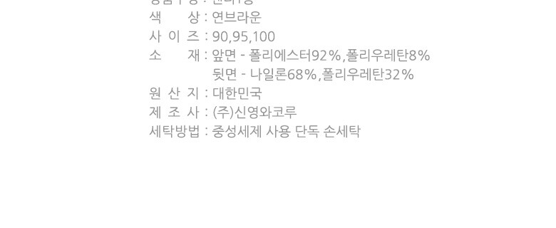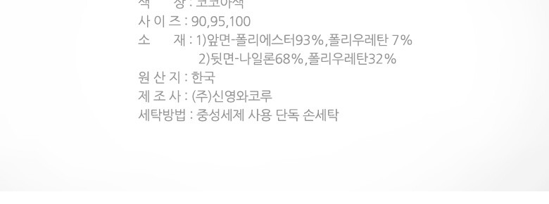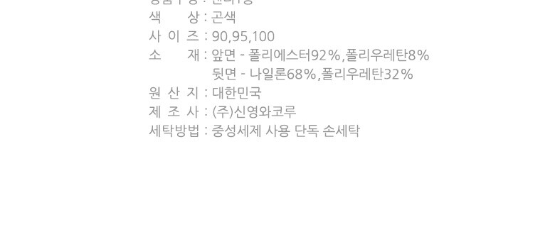 | 1. 제품 소재 (섬유의 조성 또는 혼용률을 백분율로 표시, 기능성인 경우 성적서 또는 허가서) | 앞면:폴리에스터92%,폴리우레탄8% 뒷면:나일론68%,폴리우레탄32% 대한민국 |