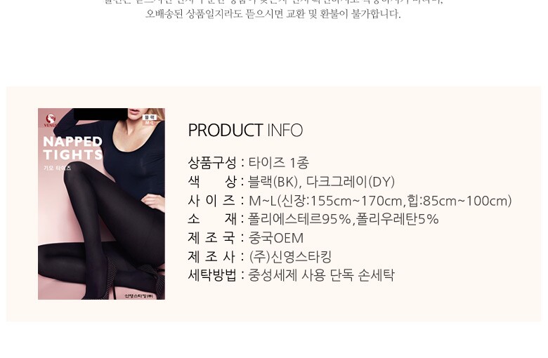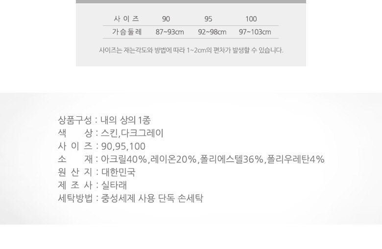 1. 제품 소재 (섬유의 조성 또는 혼용률을 백분율로 표시, 기능성인 경우 성적서 또는 허가서) | 상세페이지참조 |