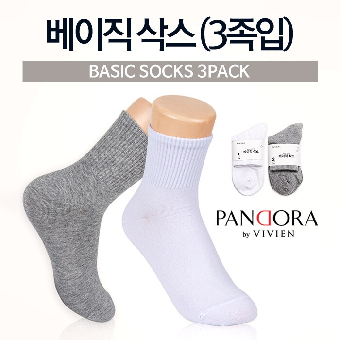[판도라by비비안] 여성용 베이직삭스 발목양말 (3족입) ks1085