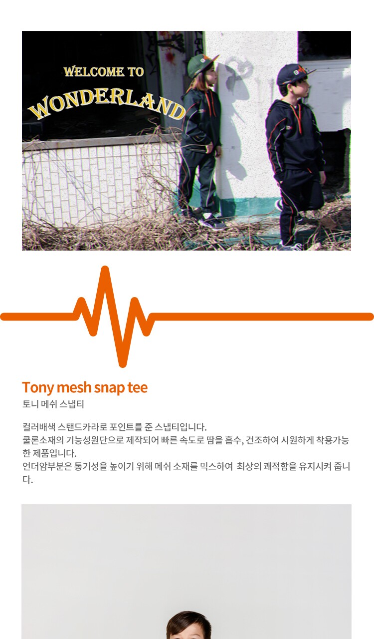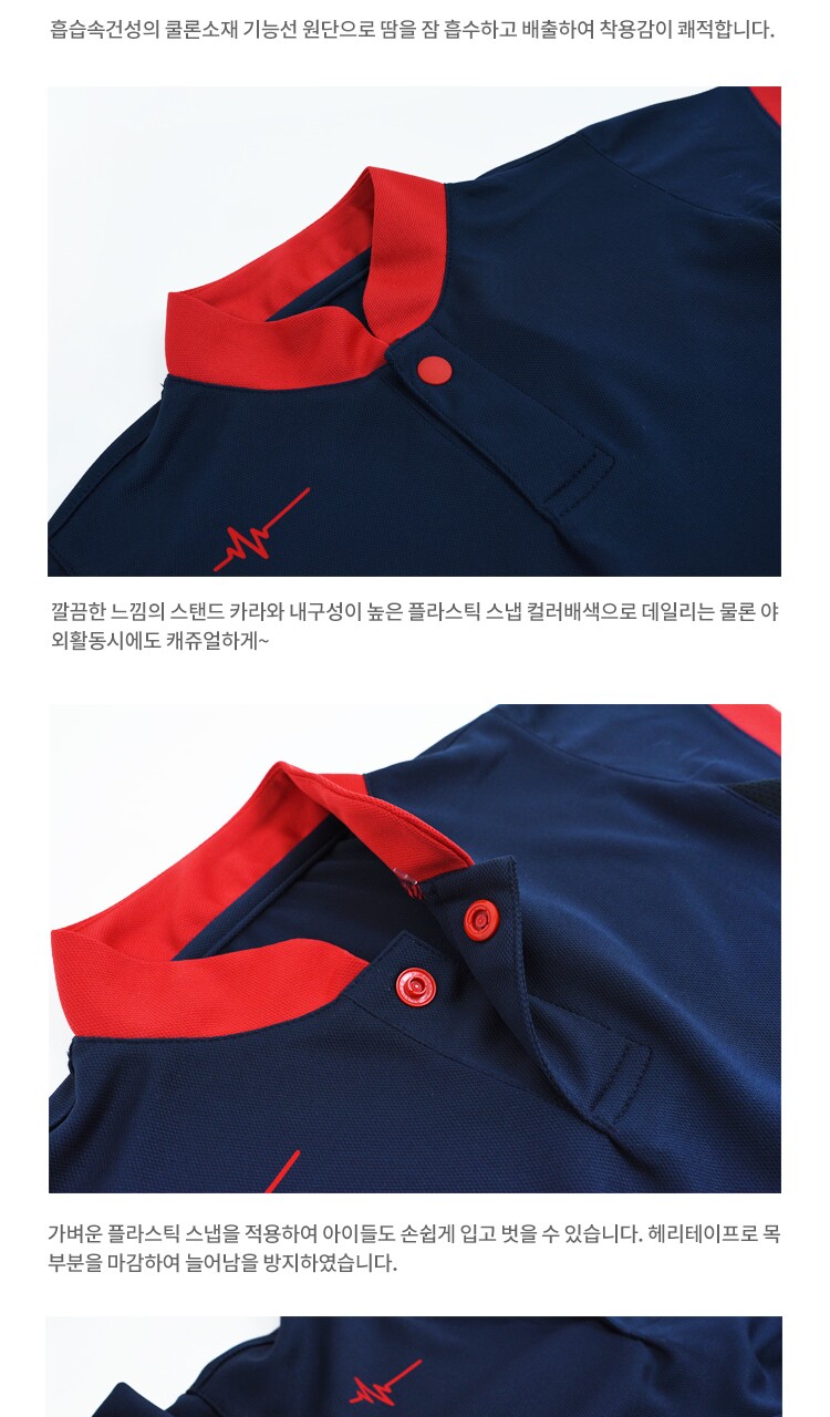 주니어 반팔티 토니 스냅 티 스탠디카라 기능성 쿨론 티 네이비