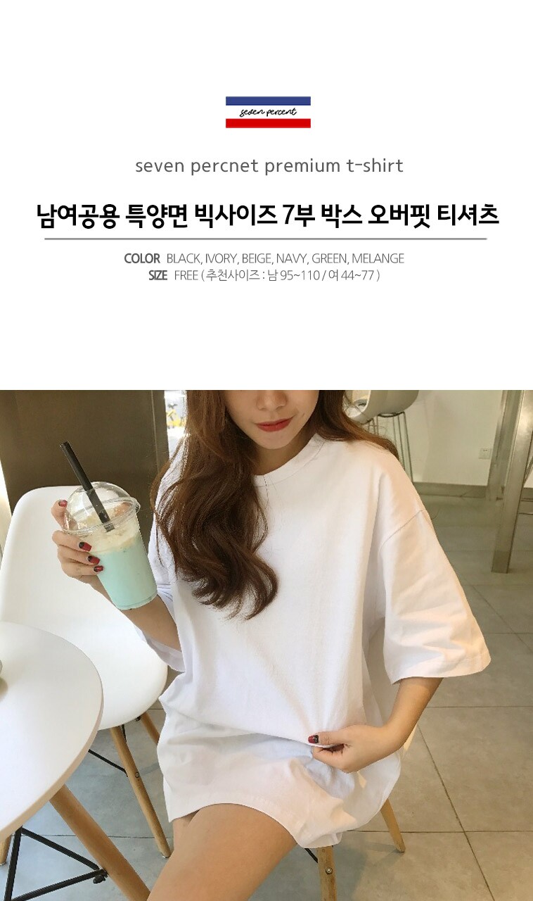 [세븐퍼센트] 남여공용 빅사이즈 특양면 7부 박스 오버핏 티셔츠