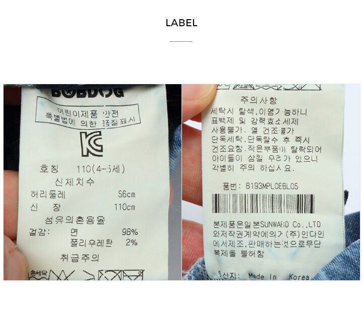 1. 제품 소재 (섬유의 조성 또는 혼용률을 백분율로 표시, 기능성인 경우 성적서 또는 허가서) | 면98%폴리우레탄2% |