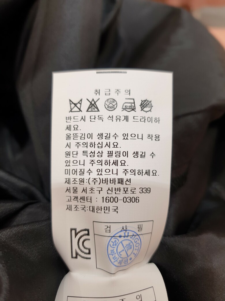 한번의 세탁후 착용하시기를 권장해 드립니다)