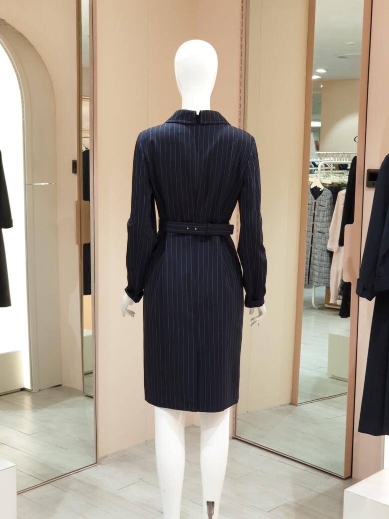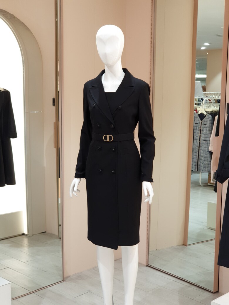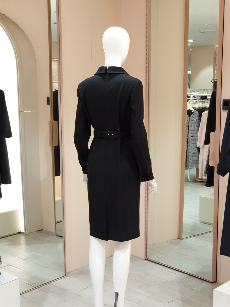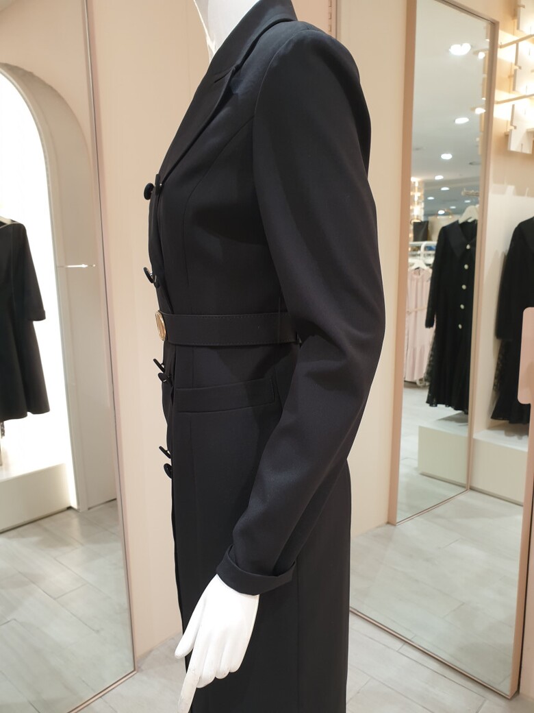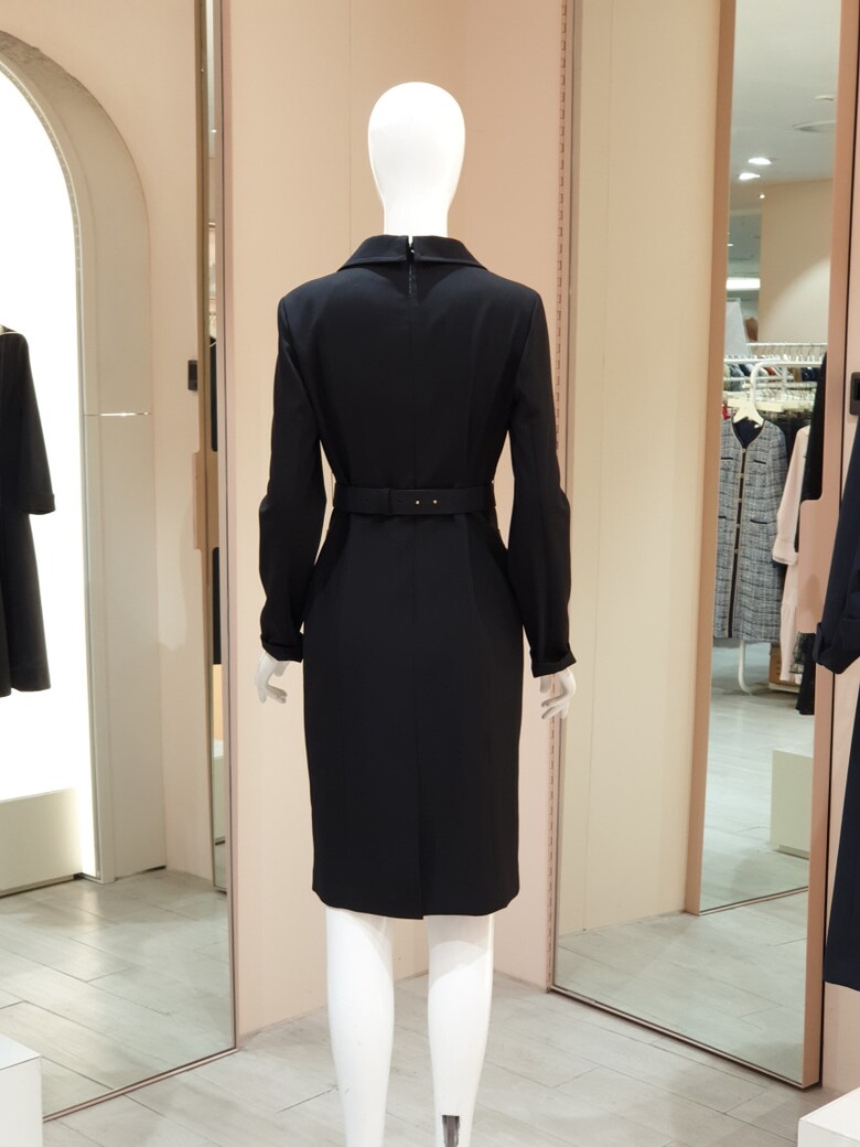 테일러드 카라 디자인에 프론트 더블 버튼 장식으로 포멀한 무드의 원피스입니다.
