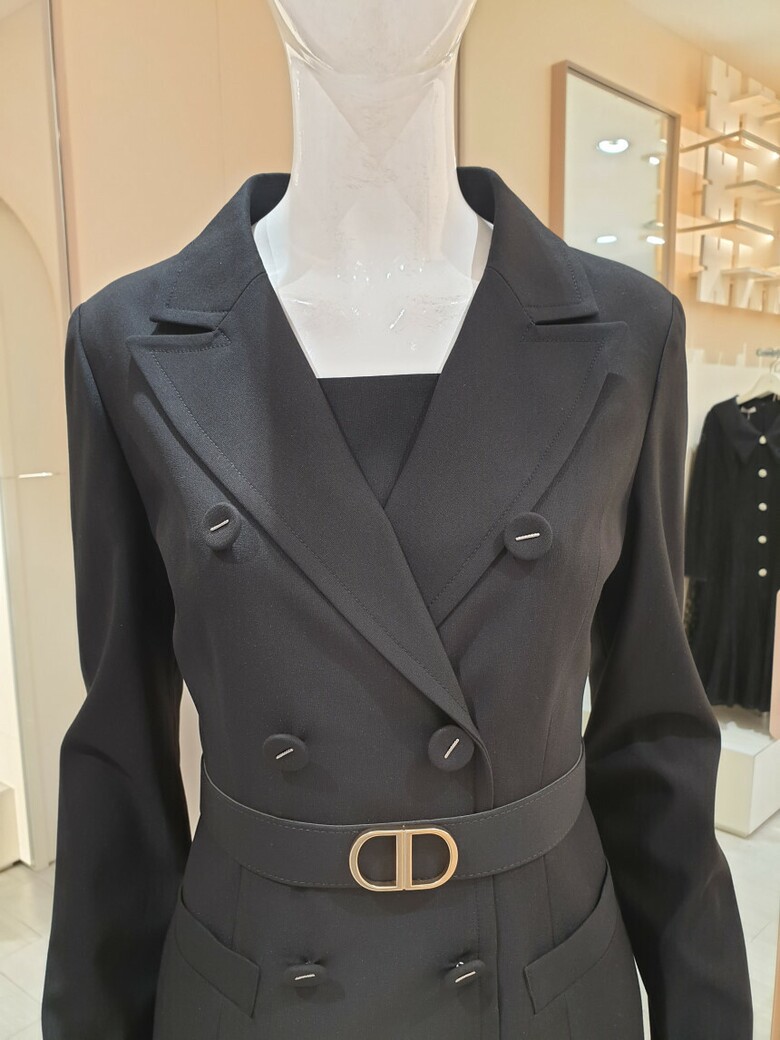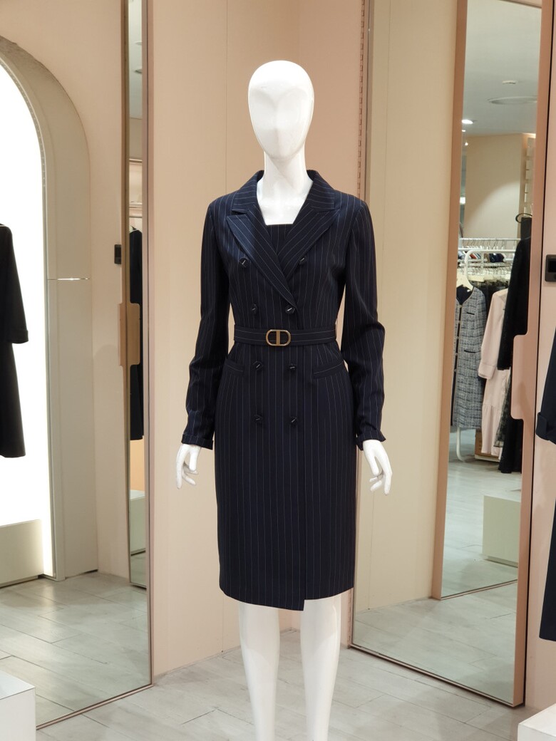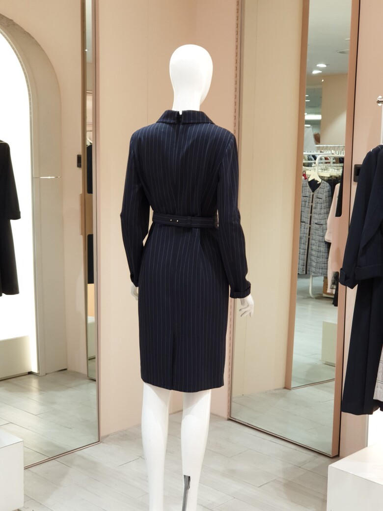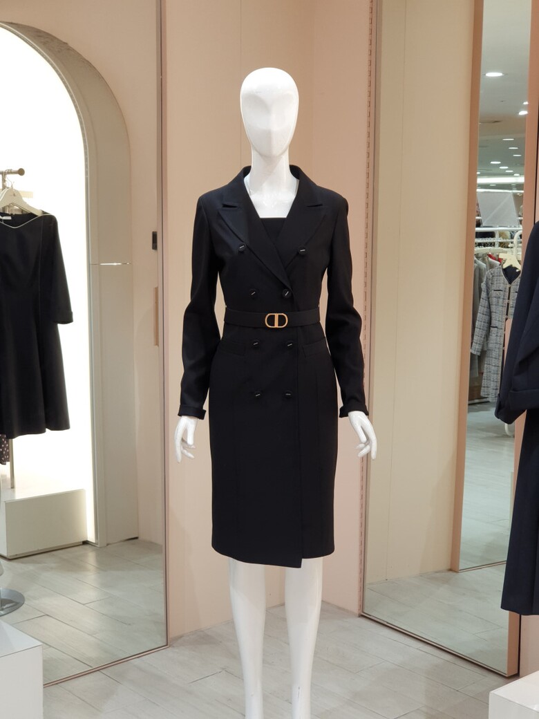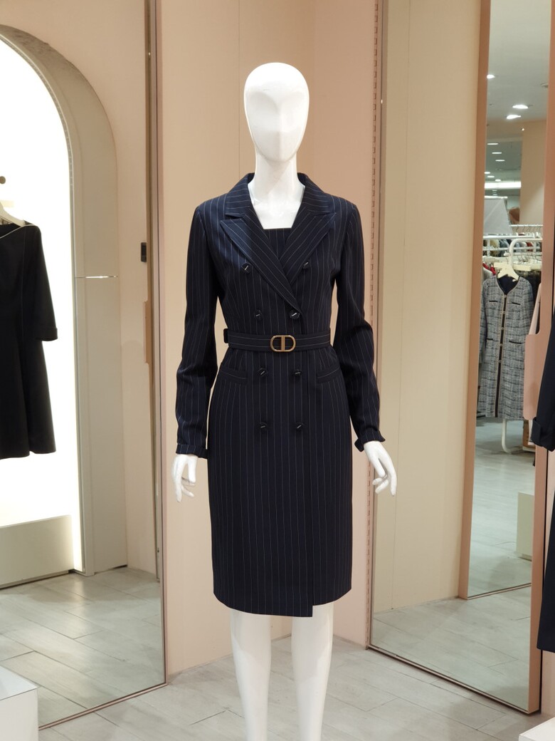 테일러드 카라 디자인에 프론트 더블 버튼 장식으로 포멀한 무드의 원피스입니다.