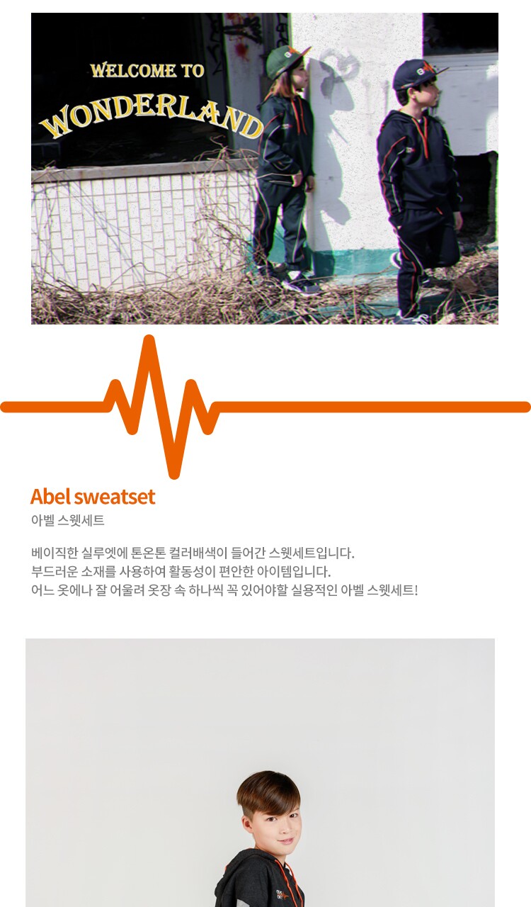 주니어/아동 트레이닝복 세트 아벨 다크그레이 후드티 허리고무팬츠