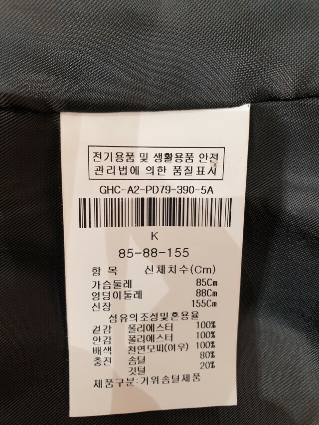 한번의 세탁후 착용하시기를 권장해 드립니다)