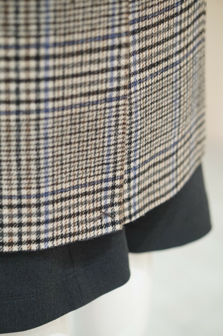 룩에 포인트를 주기 좋은 체크 패턴의 코트형 자켓입니다.