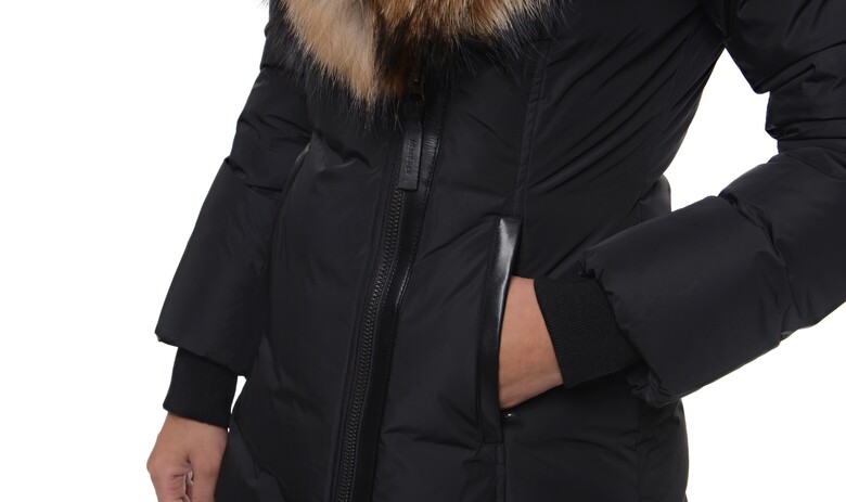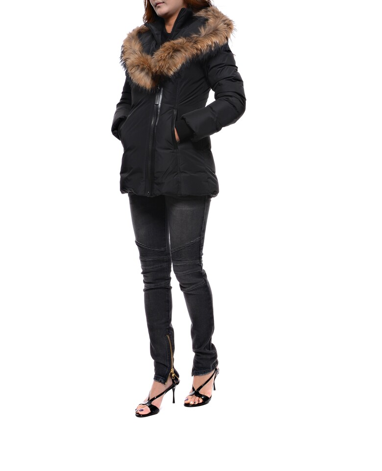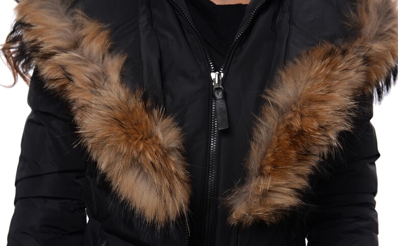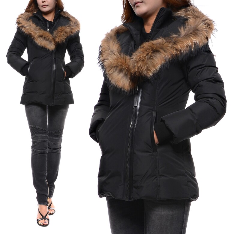 | 1. 제품 소재 (섬유의 조성 또는 혼용률을 백분율로 표시, 기능성인 경우 성적서 또는 허가서) | 겉감 100% 폴리에스테르, 충전재 90% 덕다운, 10% 페더, 라쿤퍼 |