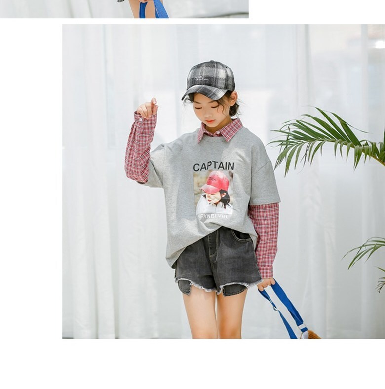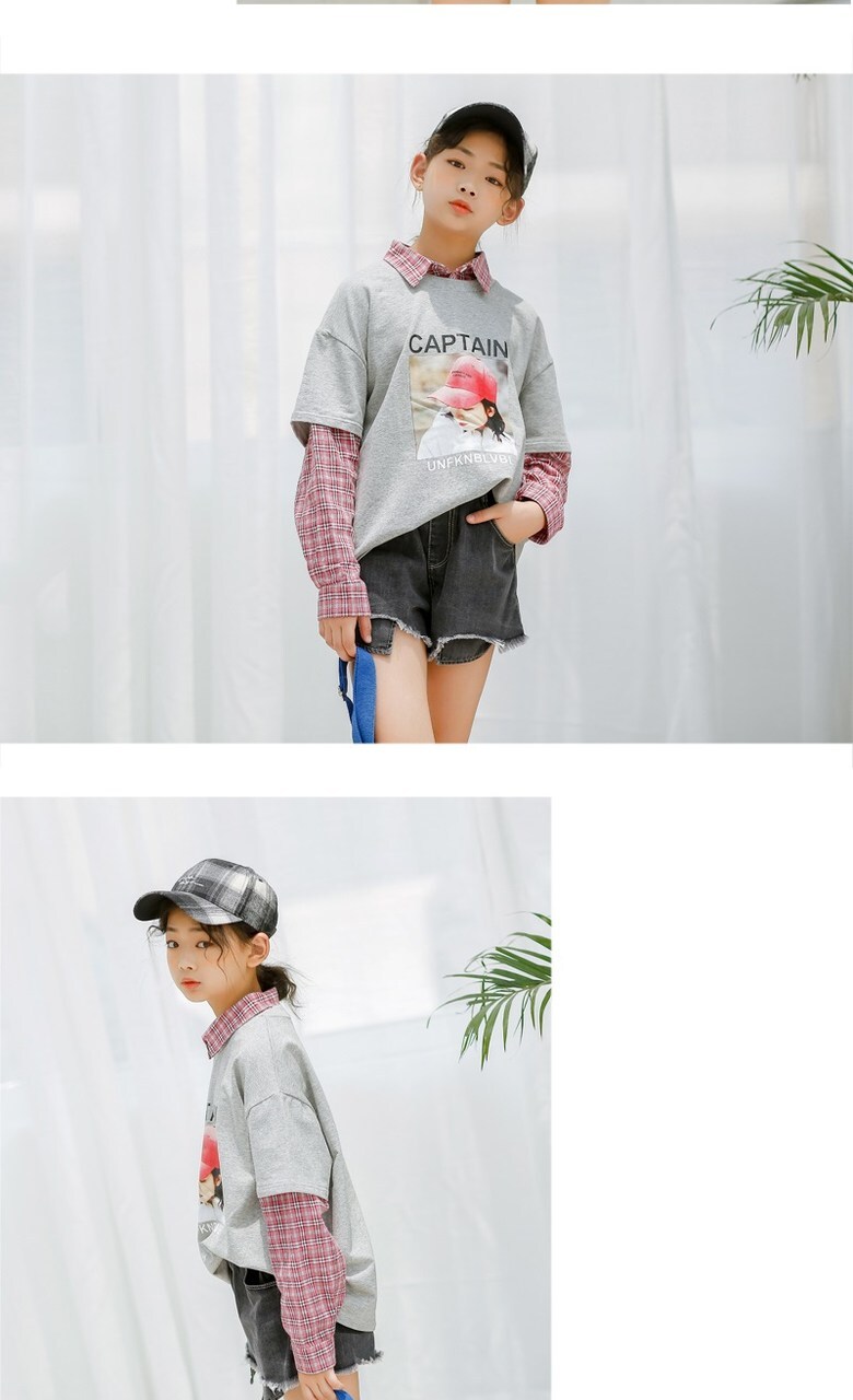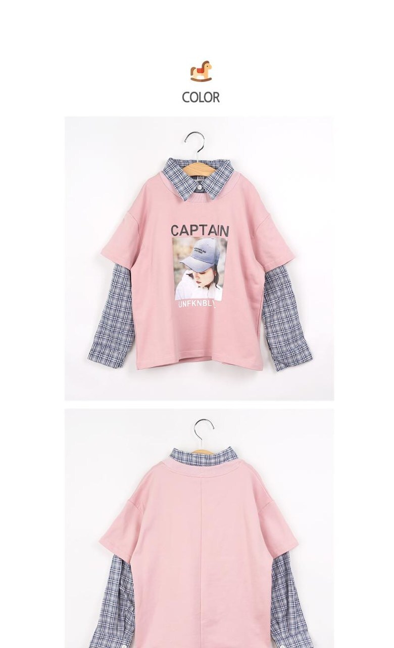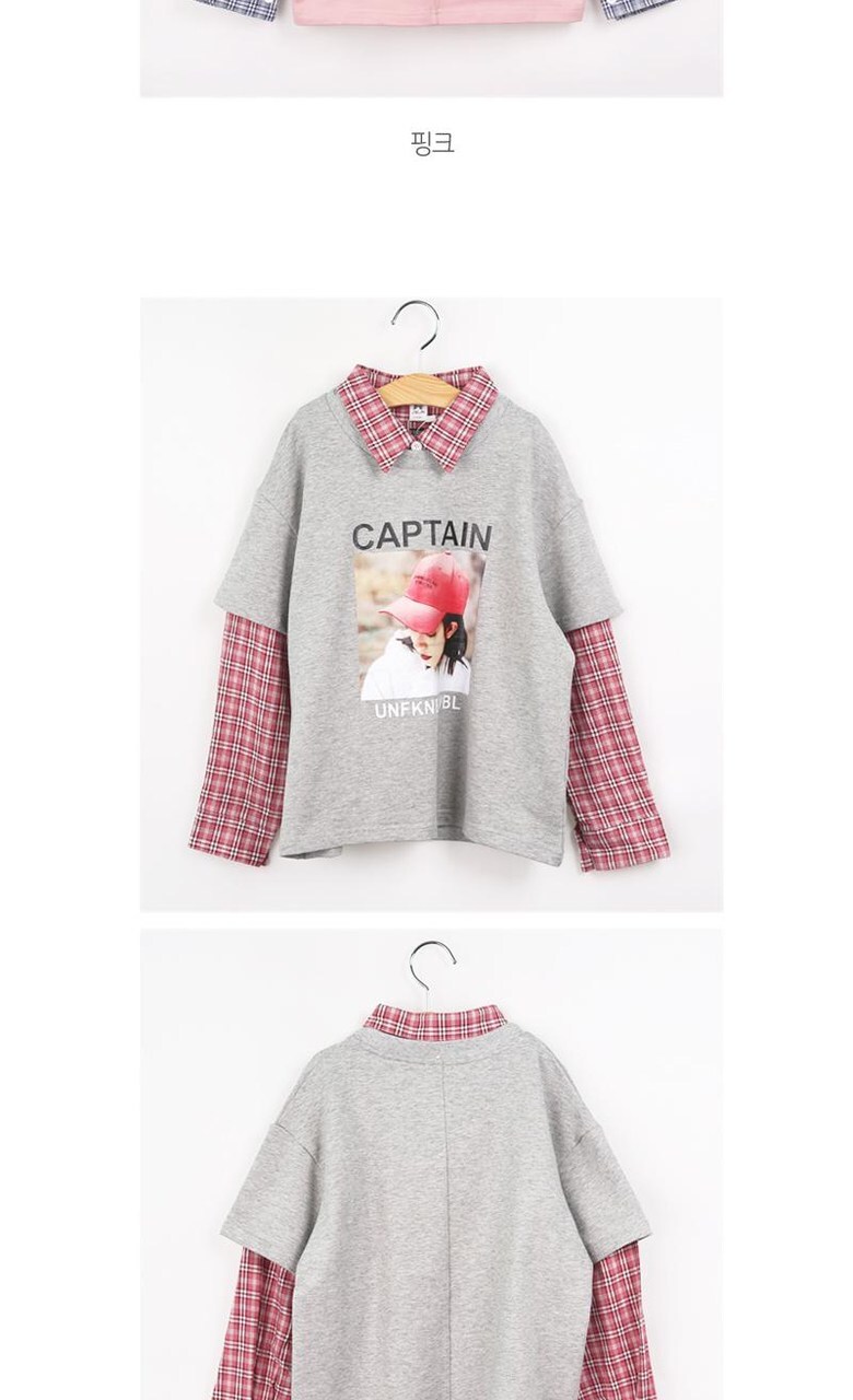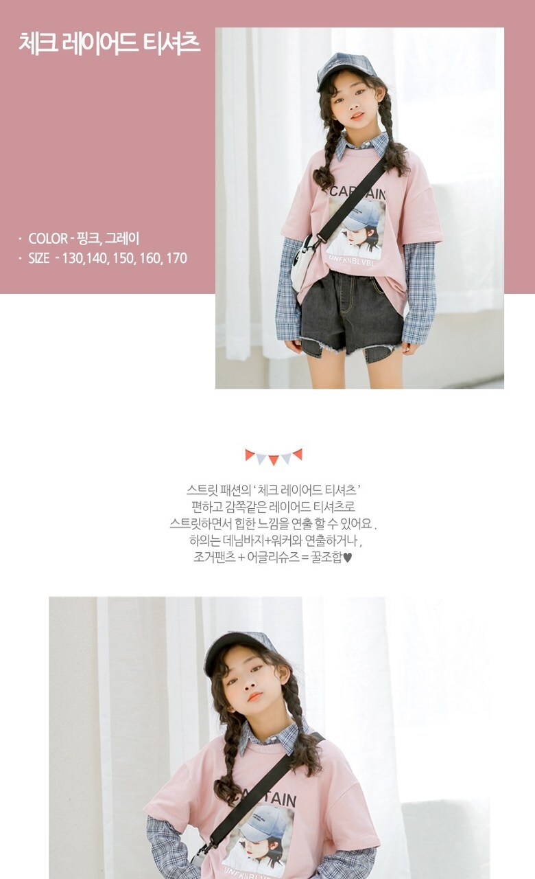 [무료배송]여아 주니어 체크 레이어드 티셔츠