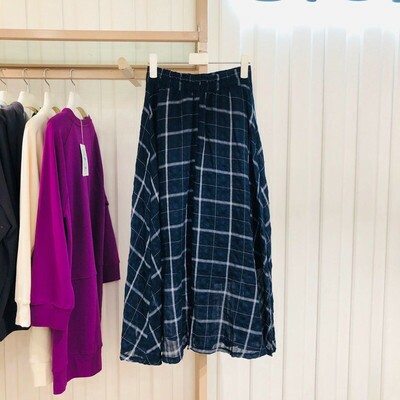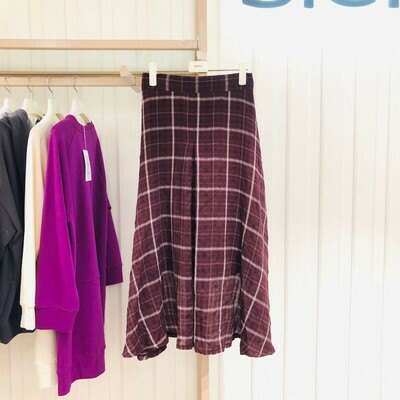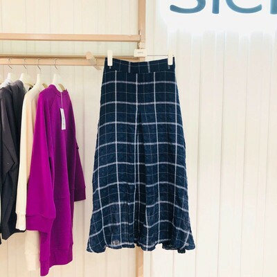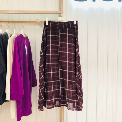 뒤밴딩 롱체크 에이라인 스커트 SE3SKF267