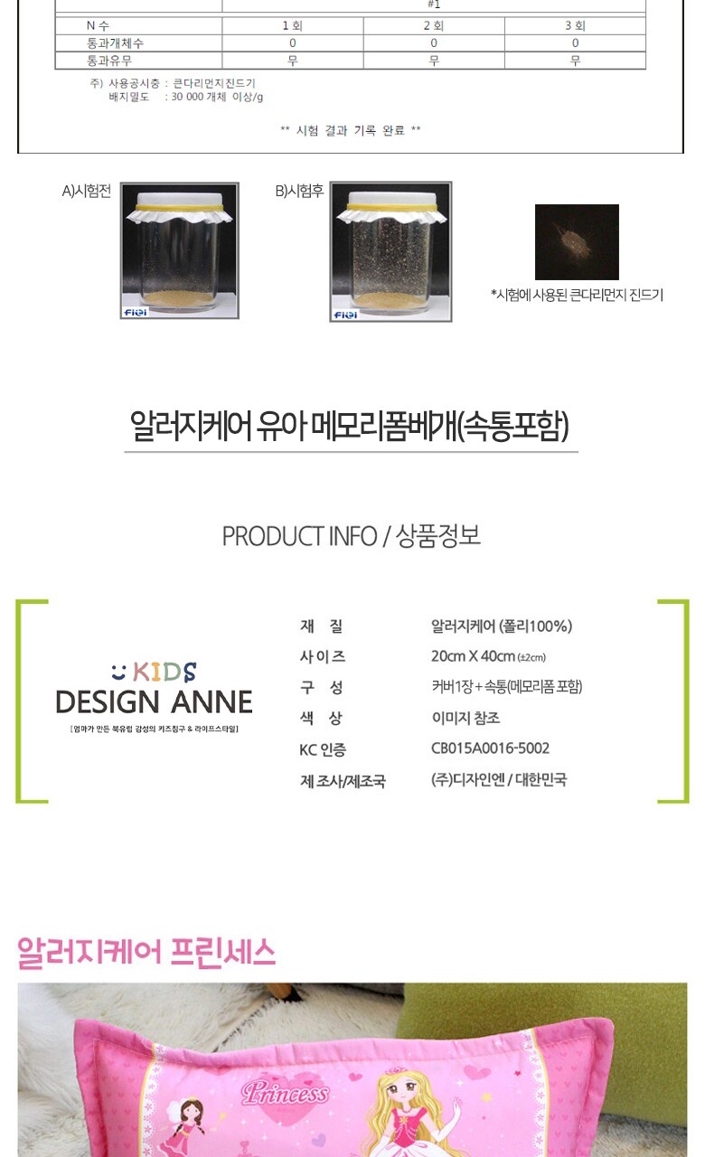 [디자인엔] 알러지케어 노알러 유아메모리폼베개