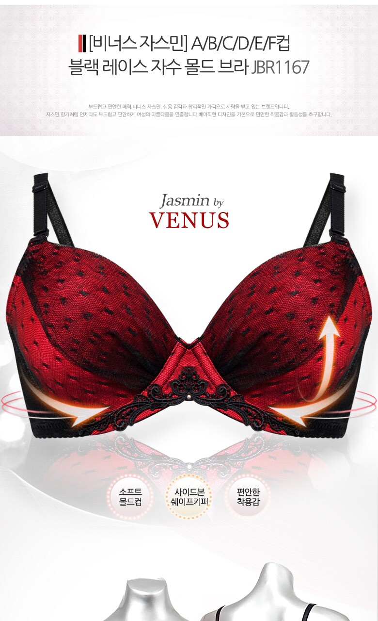 자스민by비너스 A/B/C/D/E/F컵 블랙 레이스 자수 몰드 브라 !! JBR_1167