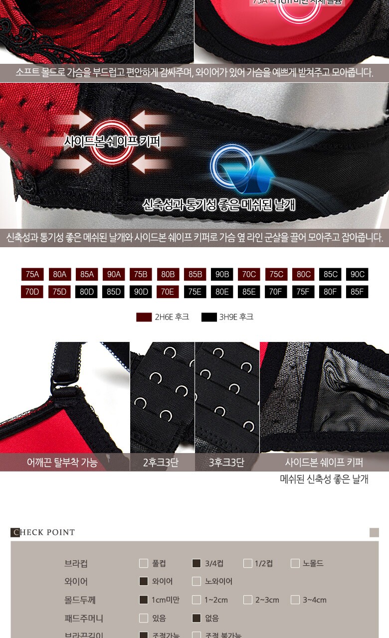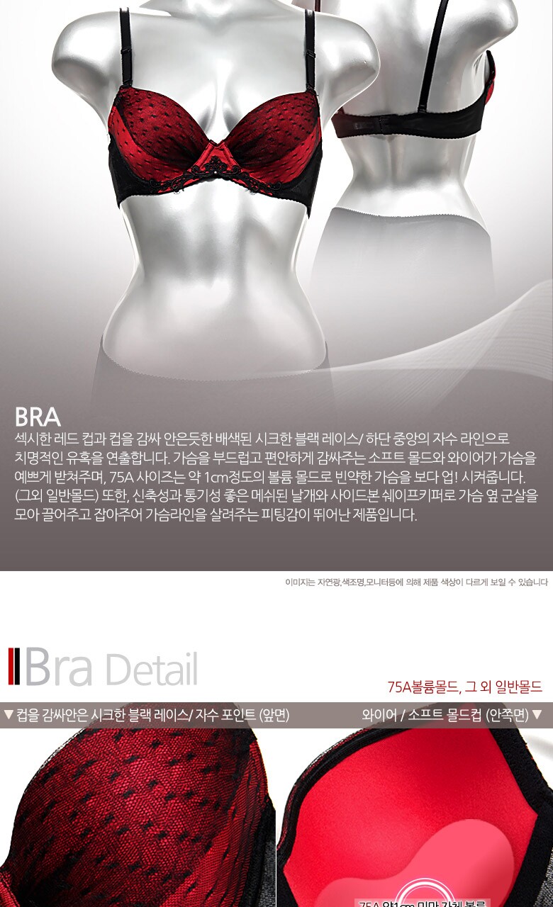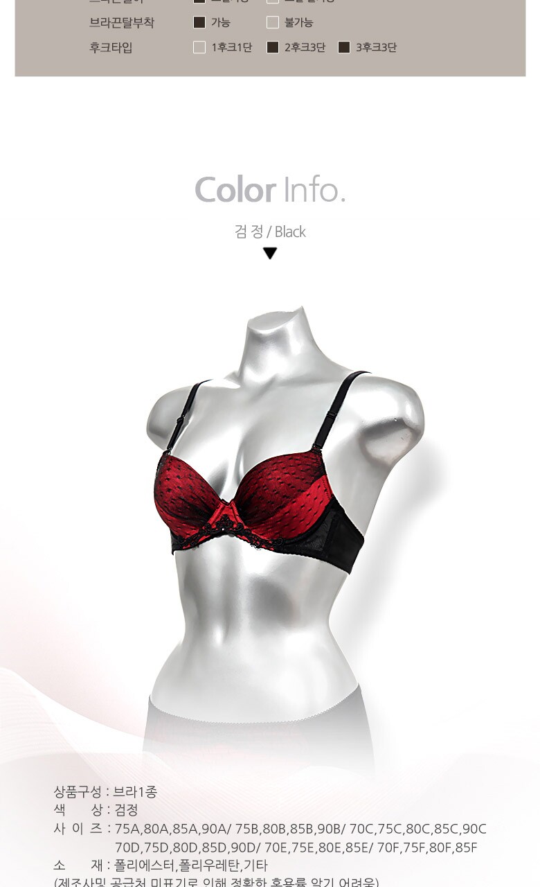 1. 제품 소재 (섬유의 조성 또는 혼용률을 백분율로 표시, 기능성인 경우 성적서 또는 허가서) | 브라-폴리에스터,폴리우레탄,기타(제조사미제공 혼용률 알수없음) |