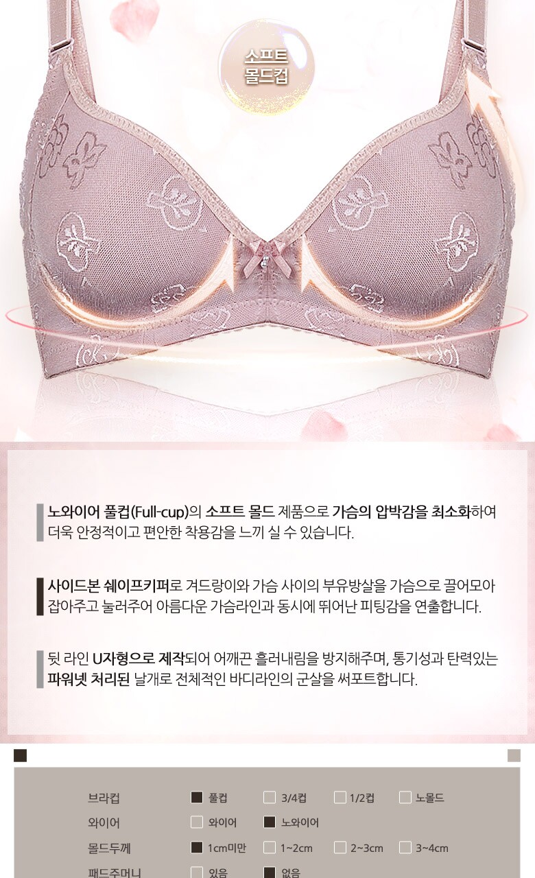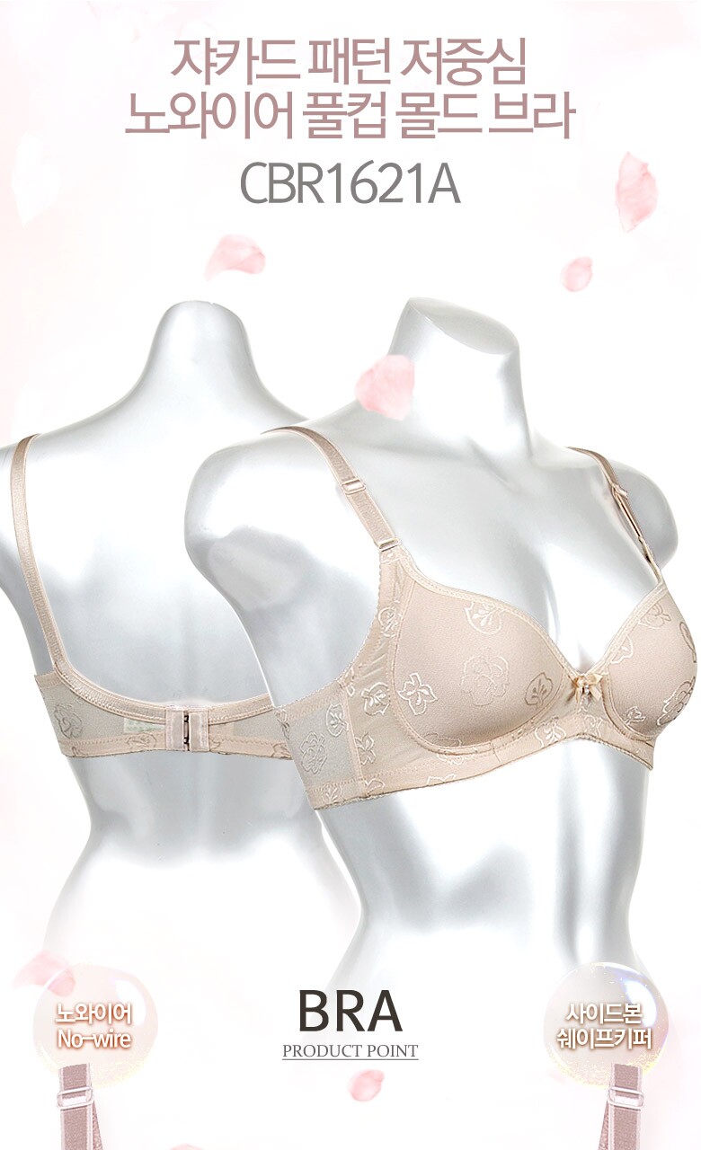 크리비아 쟈카드 패턴 노와이어 저중심 풀컵 몰드 브라 !! CBR_1621a (2장)