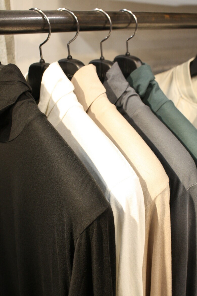 이태리에서 직수입된 모달과 면의 혼방원단으로 봄가을 스타일리시하게 연출할수있는 가볍고 촉감좋은 폴라티 5가지컬러입니다