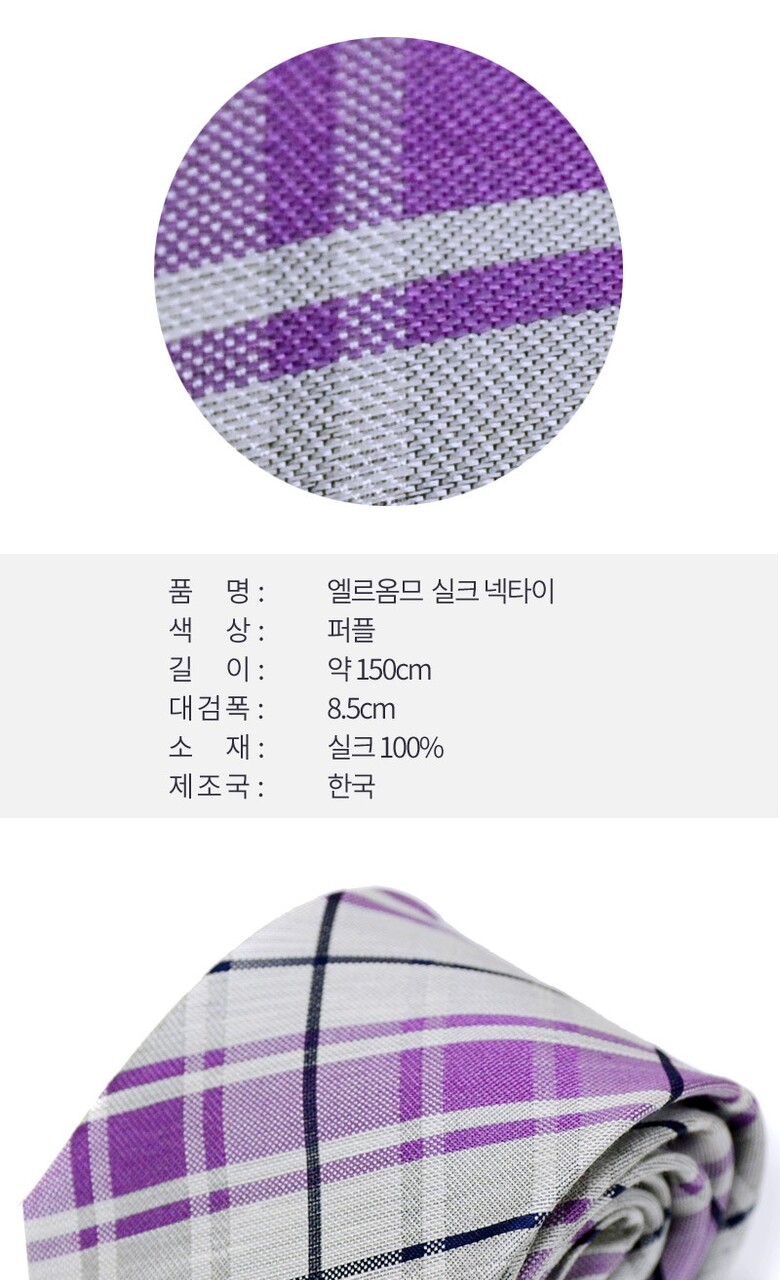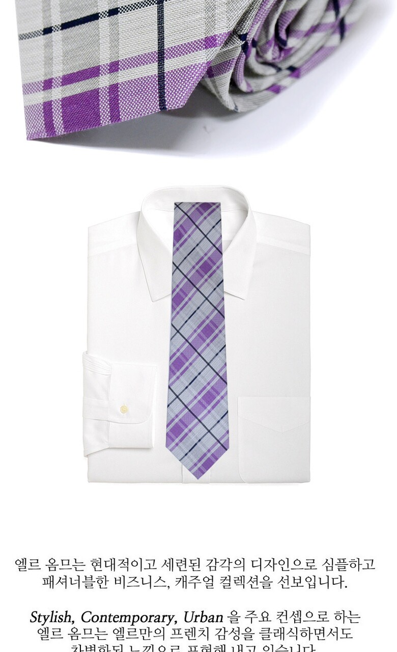 [ELLE HOMME] 엘르옴므 실크넥타이 - 린넨체크 퍼플 8.5cm