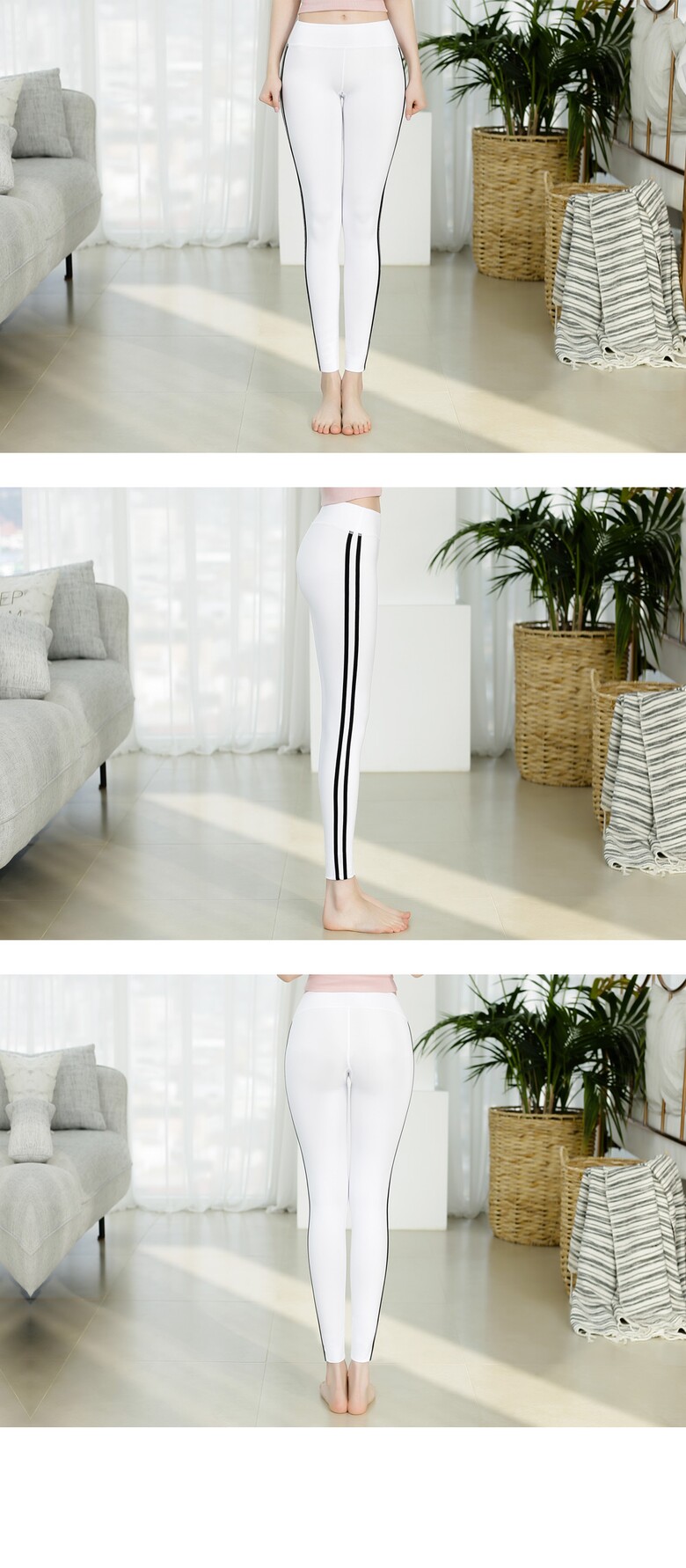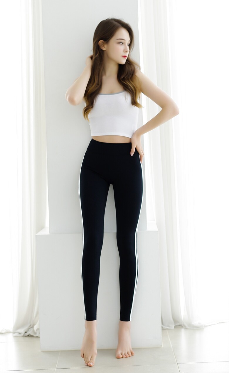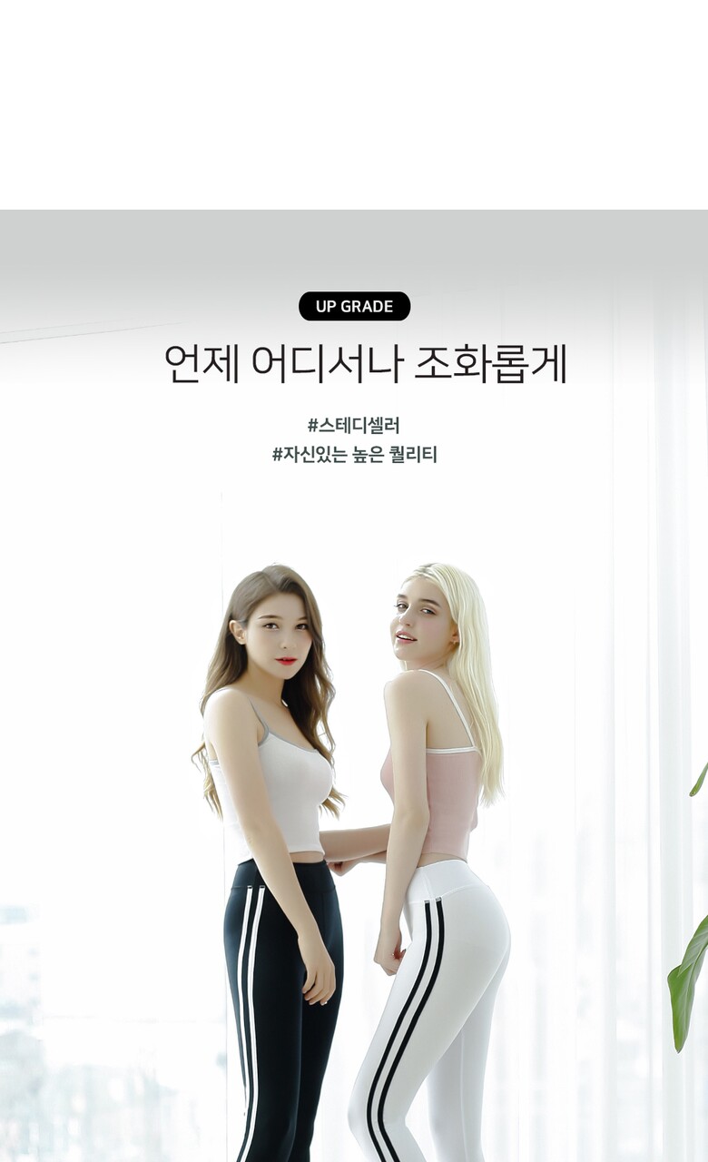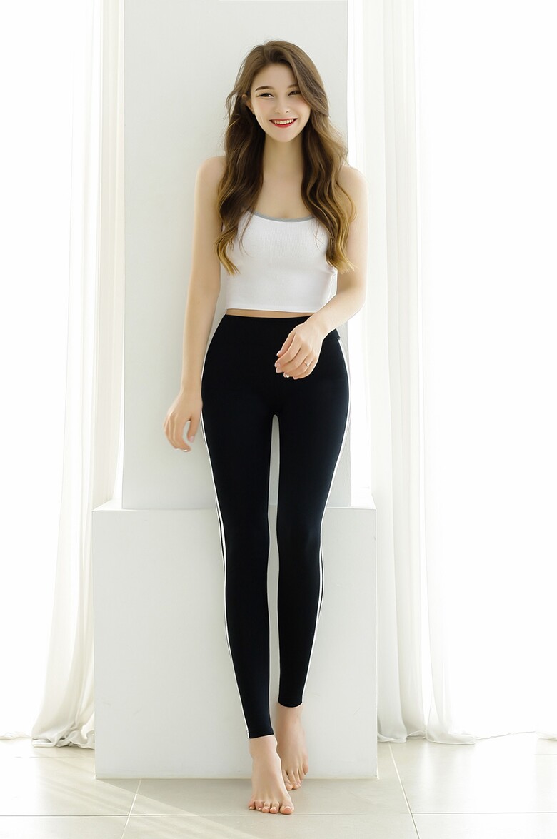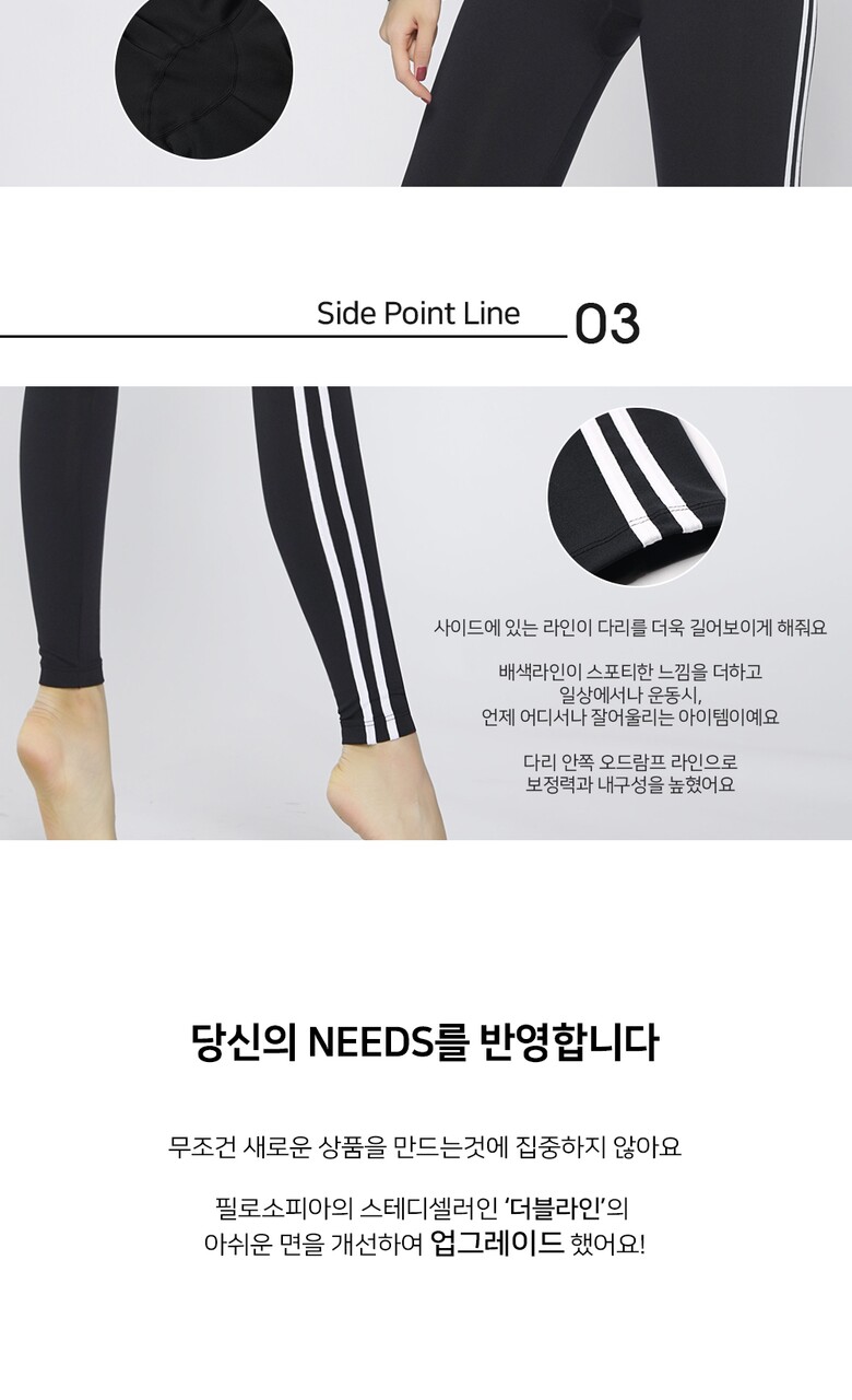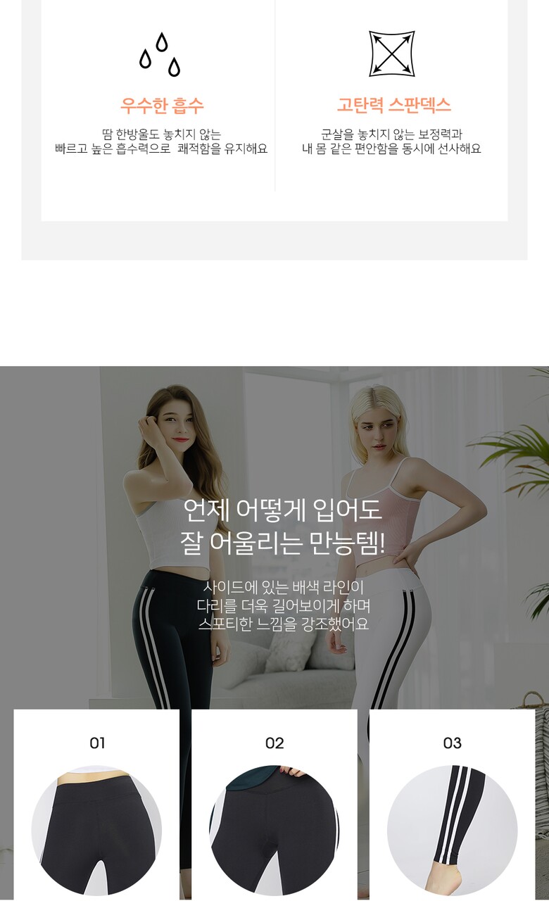 편하게 입고 운동해봅니다.신축성이 좋아요 두줄 라인이 다리가 길어보이기도 하고 구매 득템 ㅂ니다