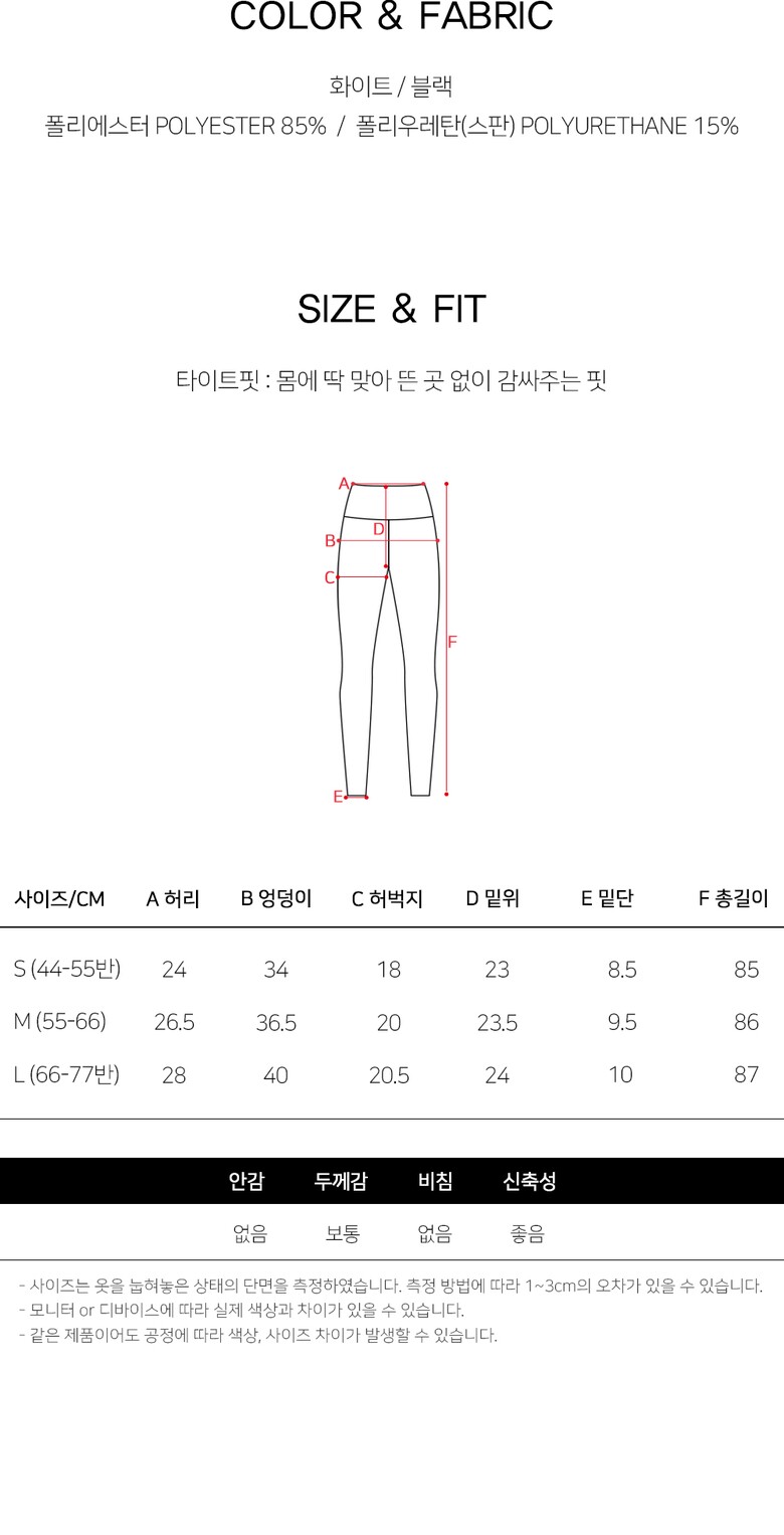 1. 제품 소재 (섬유의 조성 또는 혼용률을 백분율로 표시, 기능성인 경우 성적서 또는 허가서) | 폴리에스터 85%,폴리우레탄 15% |