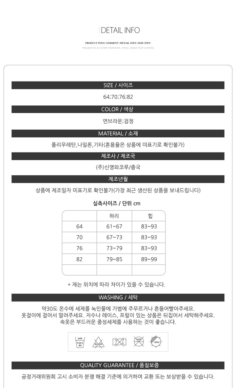 | 1. 제품 소재 (섬유의 조성 또는 혼용률을 백분율로 표시, 기능성인 경우 성적서 또는 허가서) | 폴리우레탄/나일론/기타(혼용률을 상품에 미표기로 확인불가) |