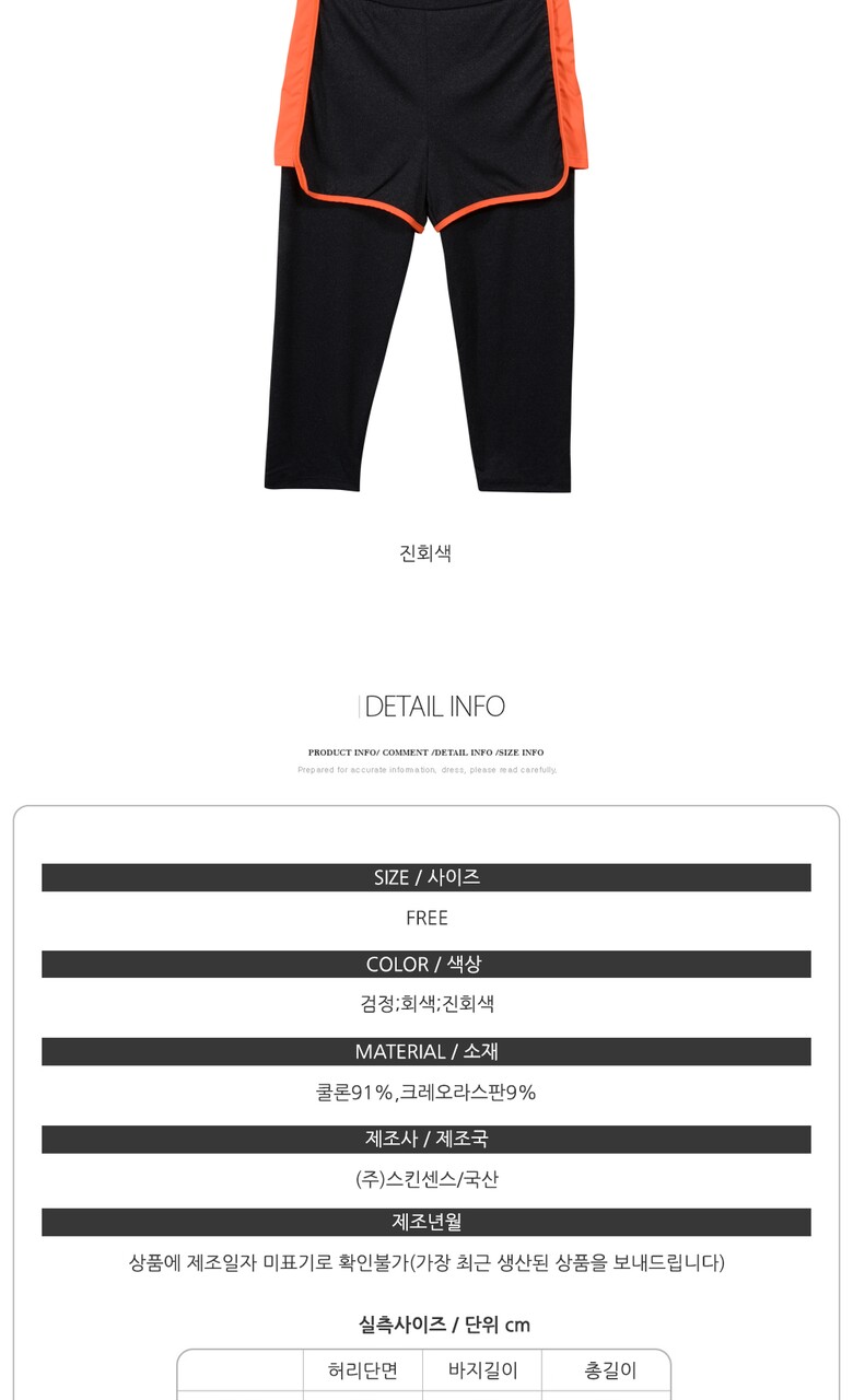 | 1. 제품 소재 (섬유의 조성 또는 혼용률을 백분율로 표시, 기능성인 경우 성적서 또는 허가서) | 코트나91%/크레오라스판9% |