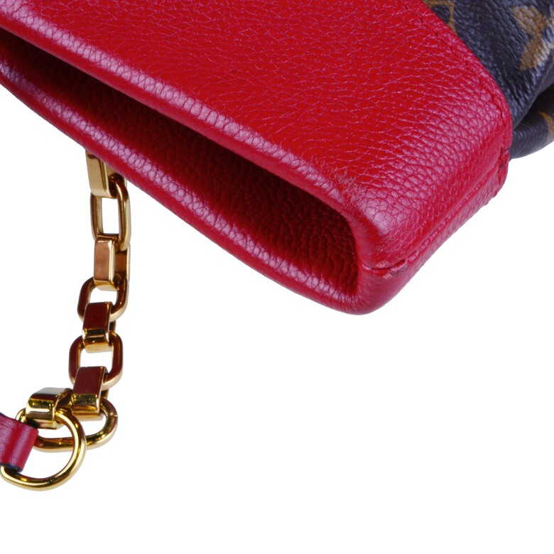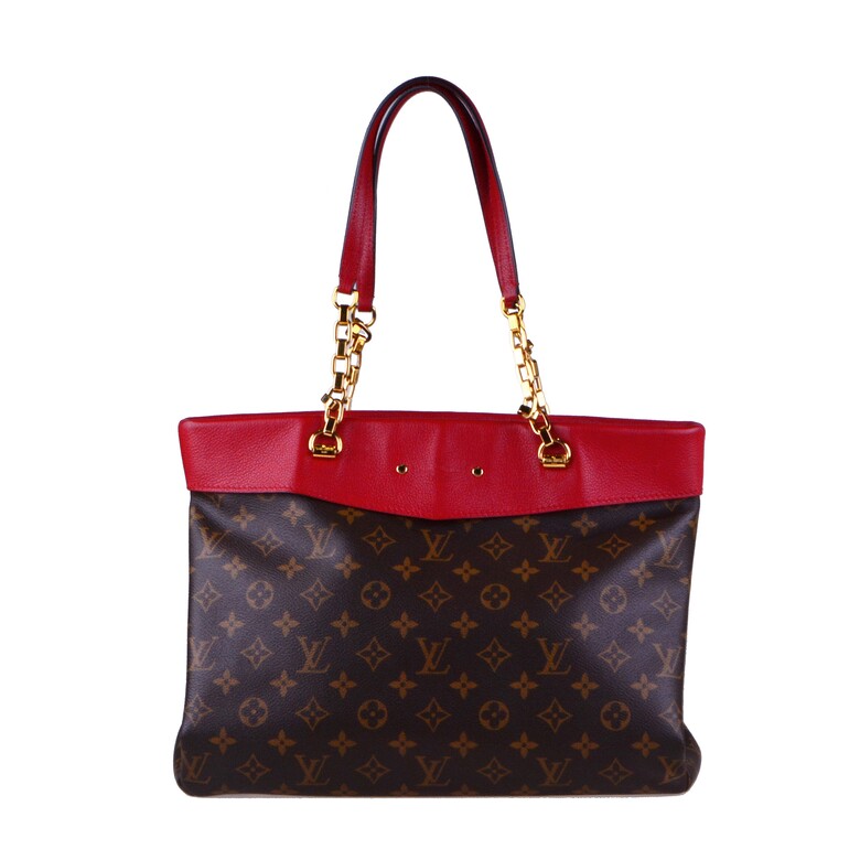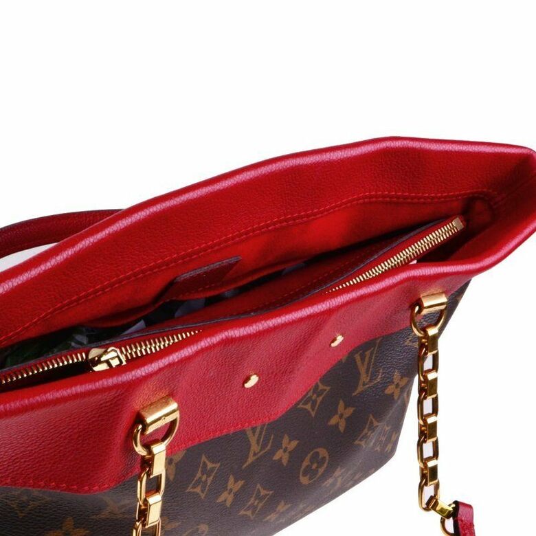 내용: 루이비통 팔라스 쇼퍼 체인백입니다. 내부에 중간 지퍼백이 있어서 양쪽으로 나누어 수납할 수 있는 실용적인 아이템입니다.