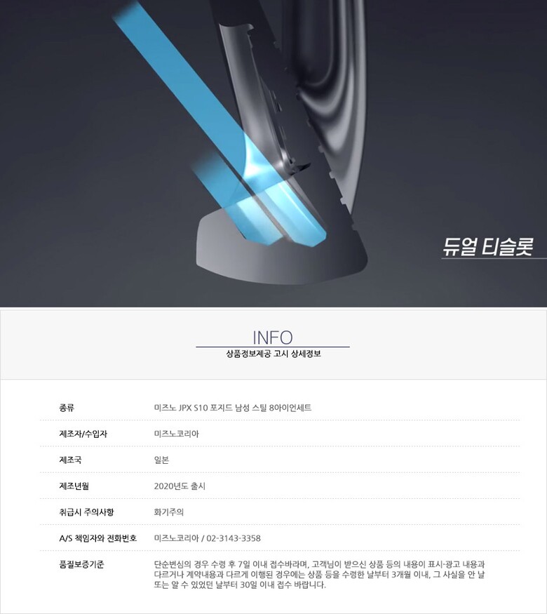 1. 품명 및 모델명 미즈노 JPX S10 FORGED NS950 PM 8I 남성 스틸 8아이언