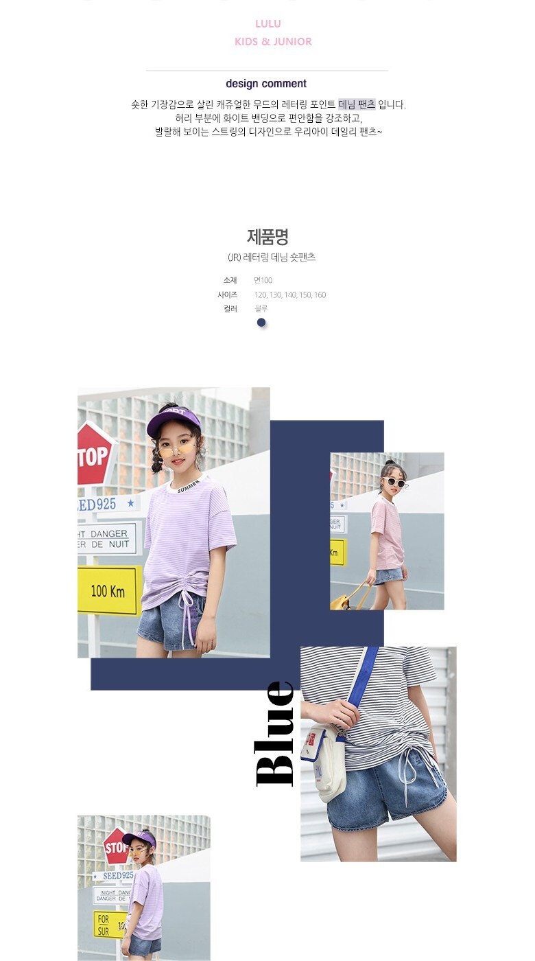 [무료배송]여아주니어 레터링 데님 3부팬츠