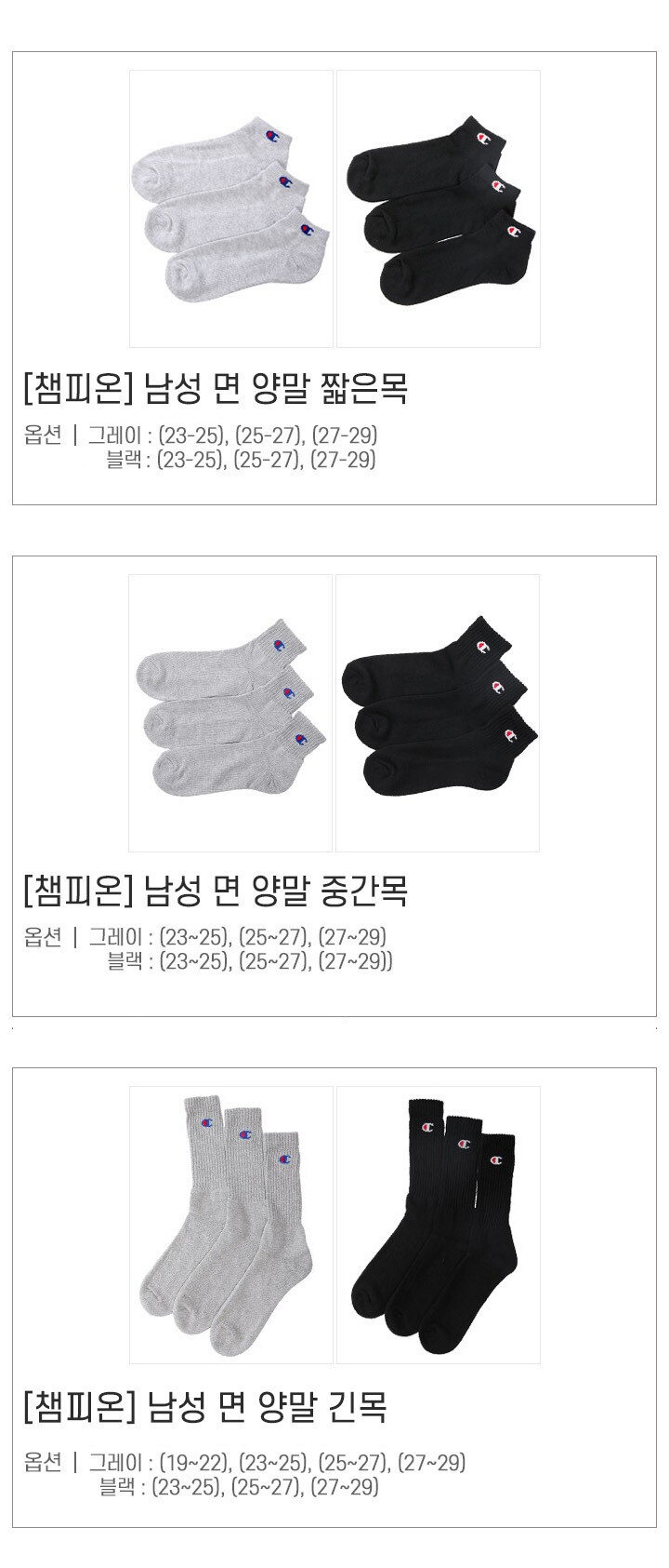 챔피온 로고 프린트 스포츠 양말 ★3족 1세트★