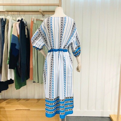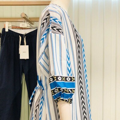 허리스트링 5부 패턴물 롱 원피스