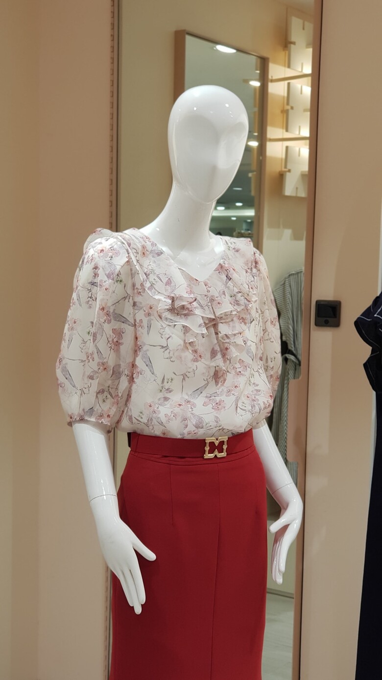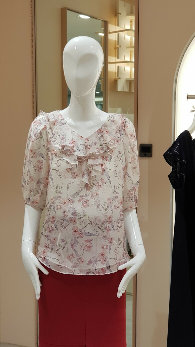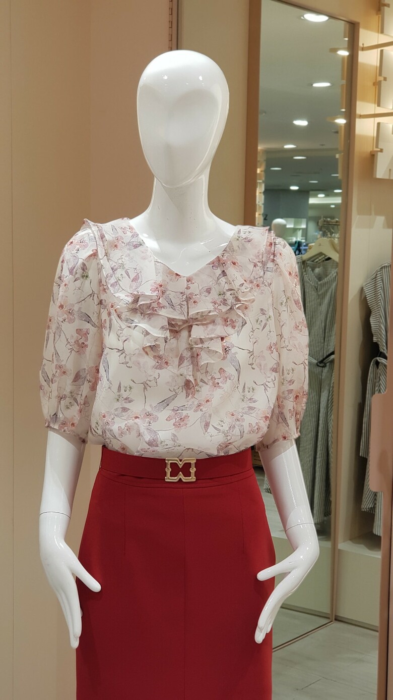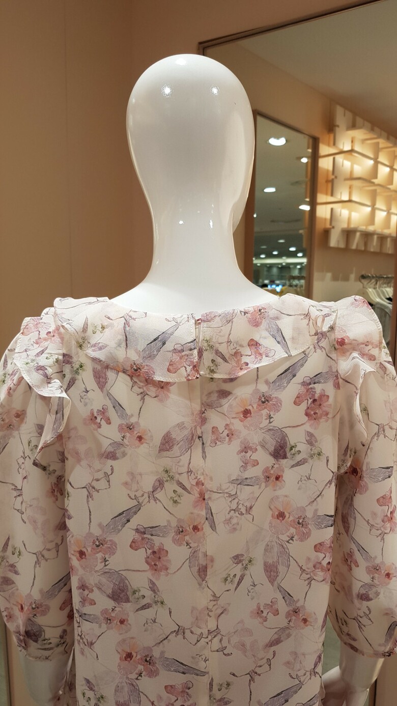 네크라인을 따라 러플 디테일로 입체감을 살린 블라우스입니다.
