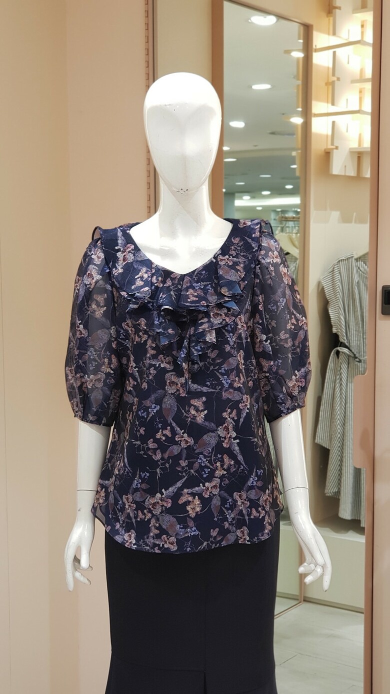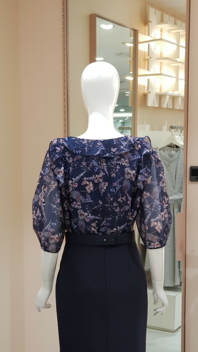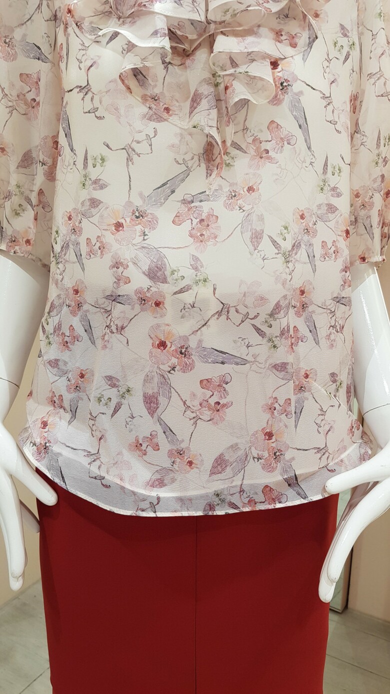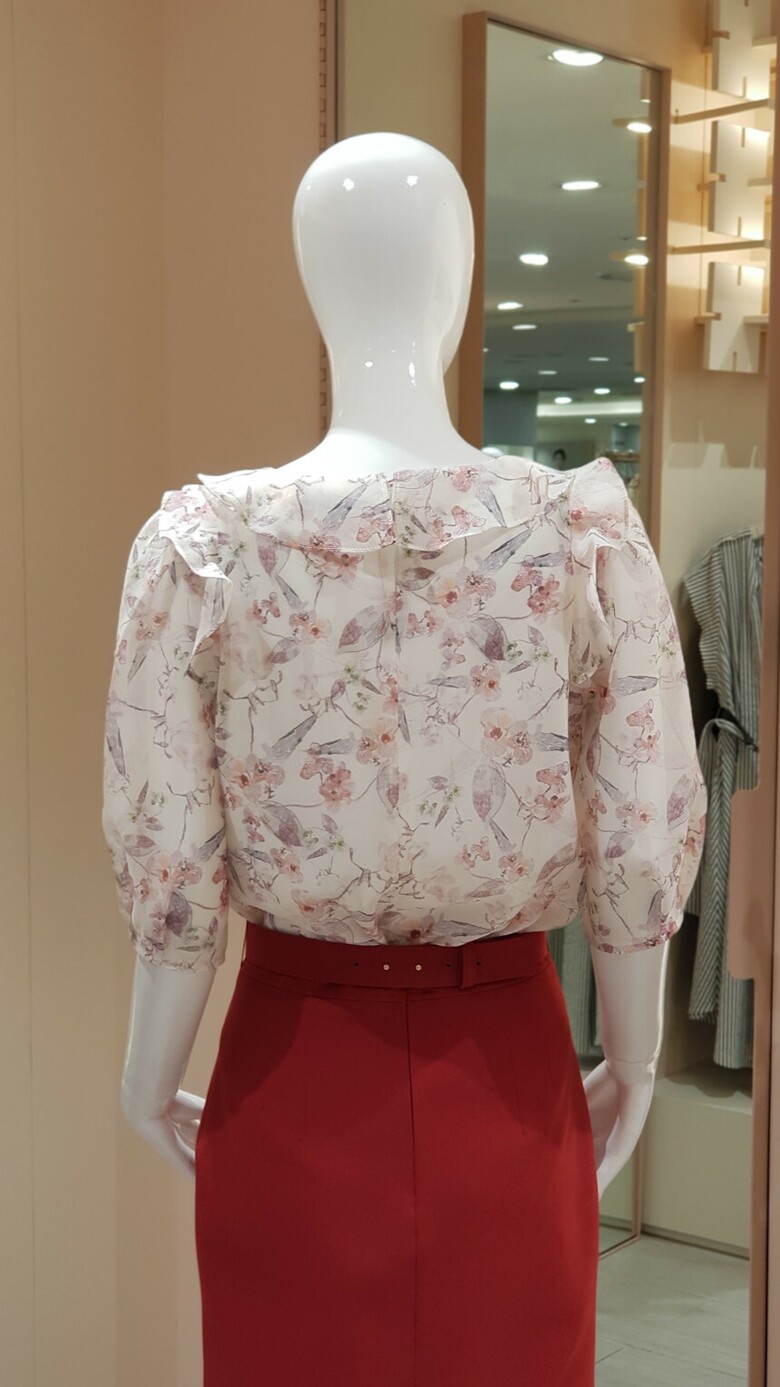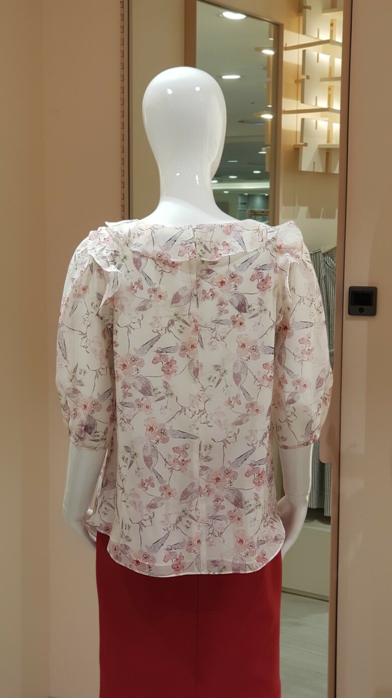 네크라인을 따라 러플 디테일로 입체감을 살린 블라우스입니다.