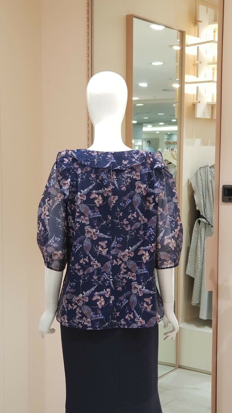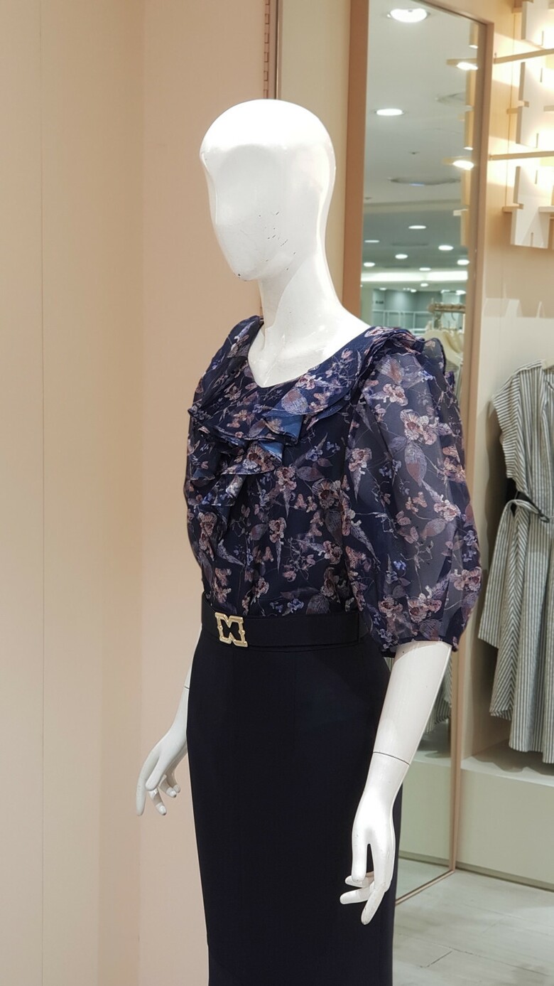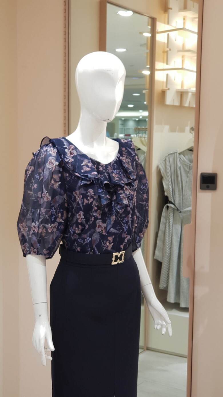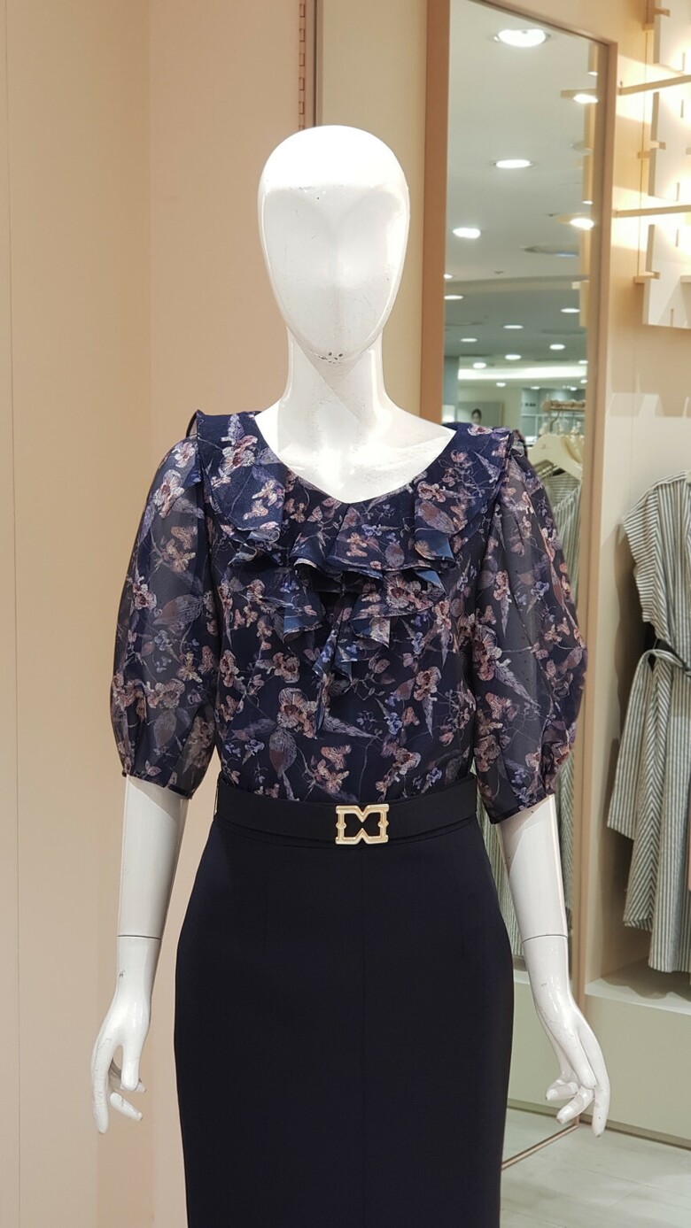 네크라인을 따라 러플 디테일로 입체감을 살린 블라우스입니다.